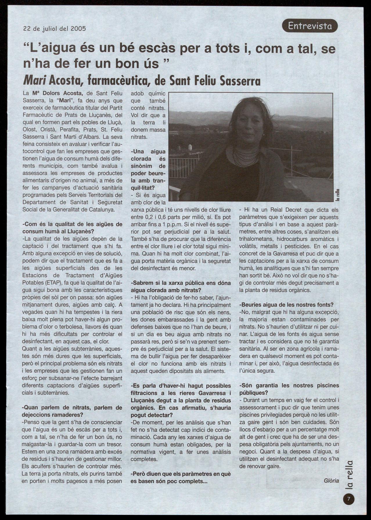 Entrevista, pàg. 7 Mari Acosta, farmacèutica, de Sant Feliu Sasserra