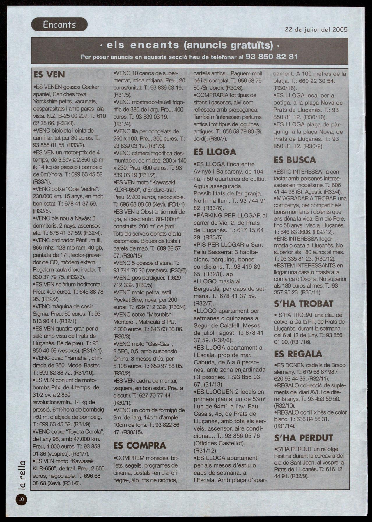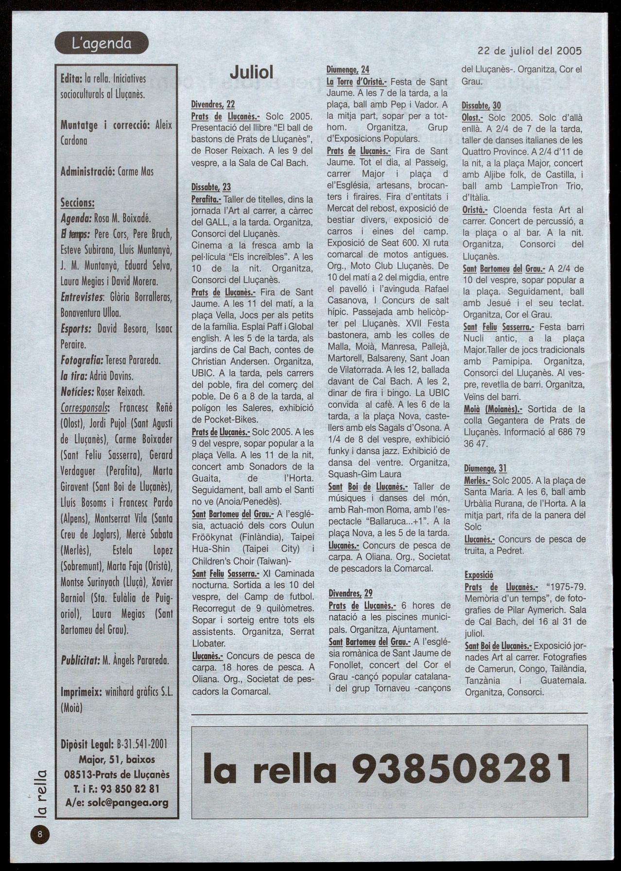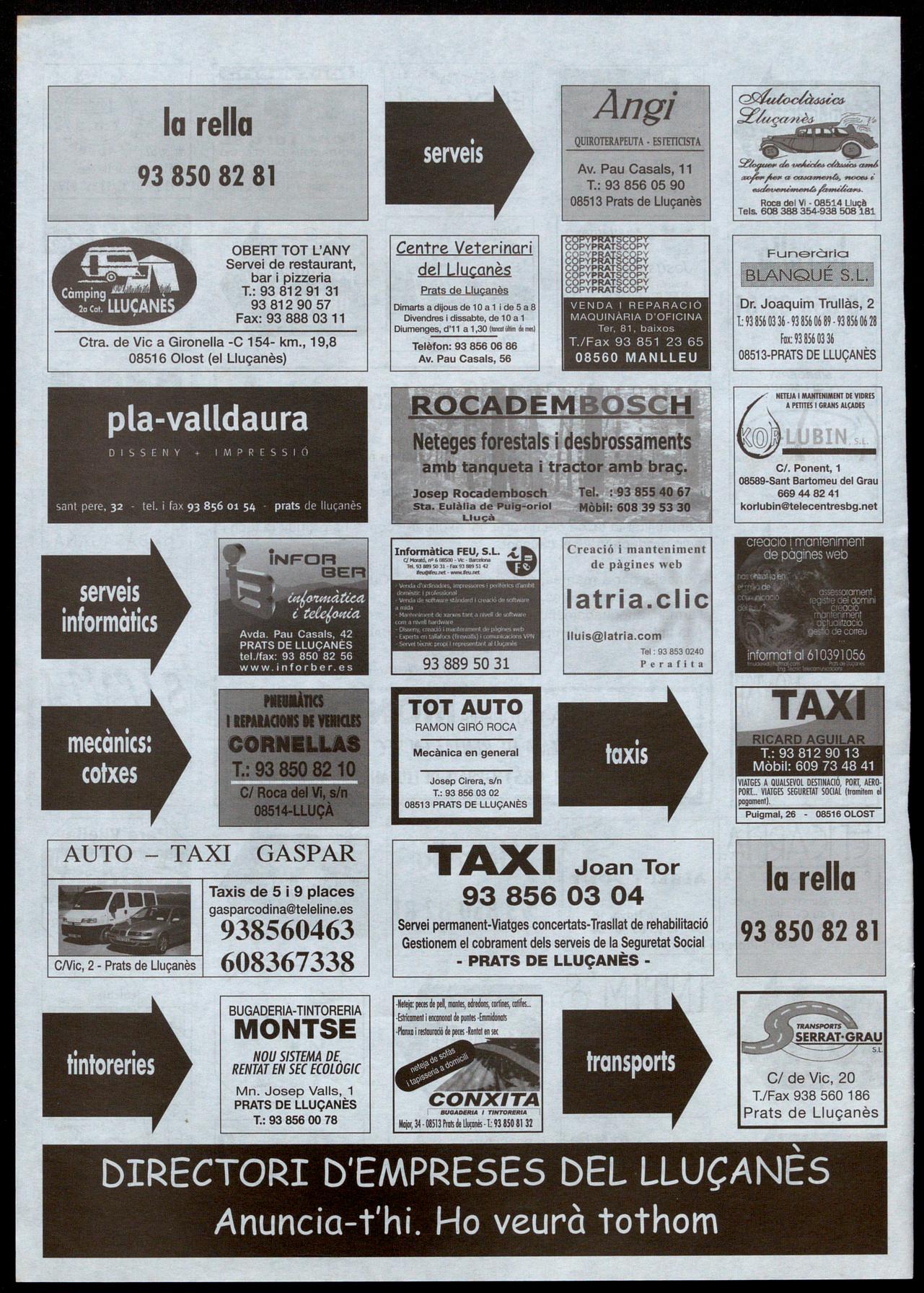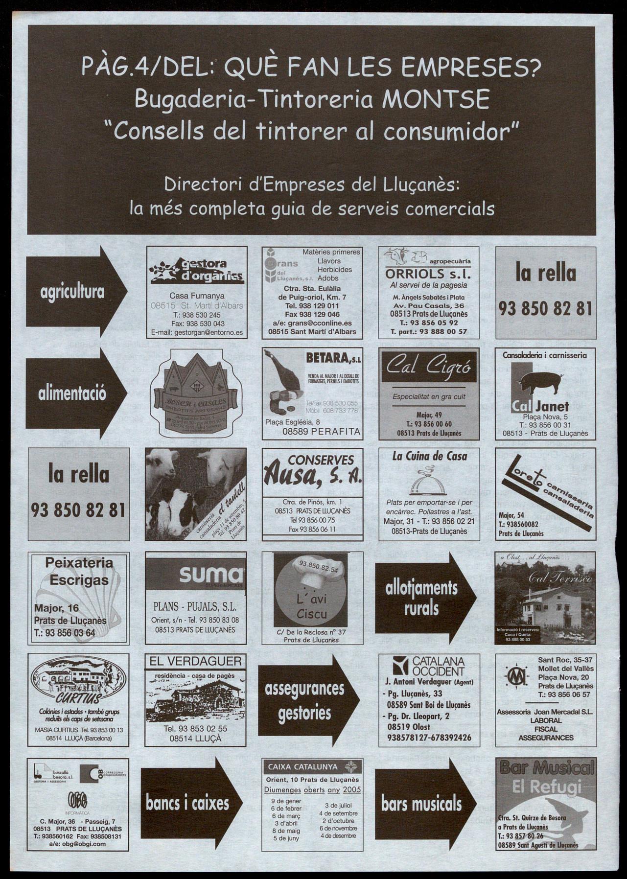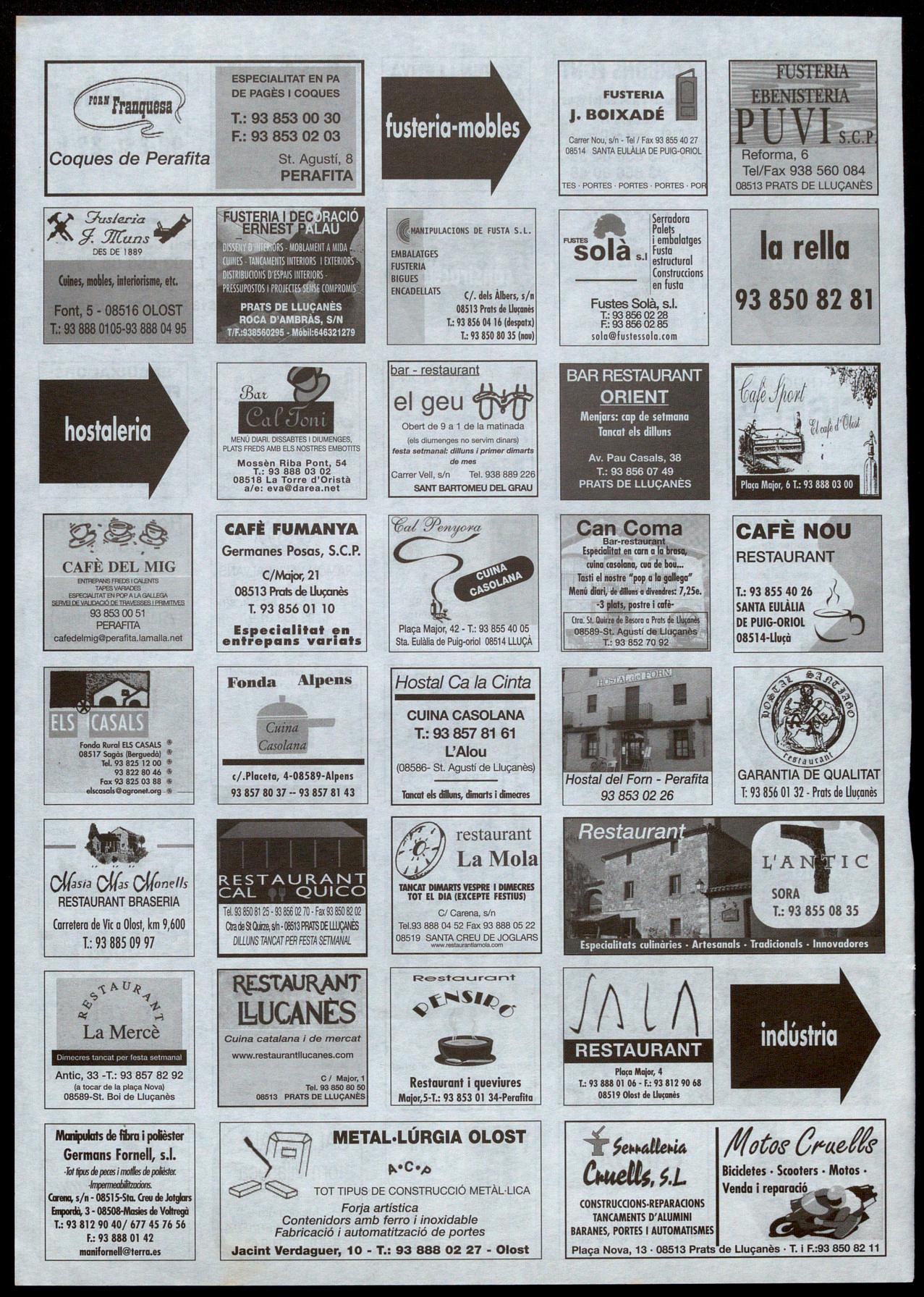 Escoles, 5 T.: 93 856 06 74· Prats de Llucanès