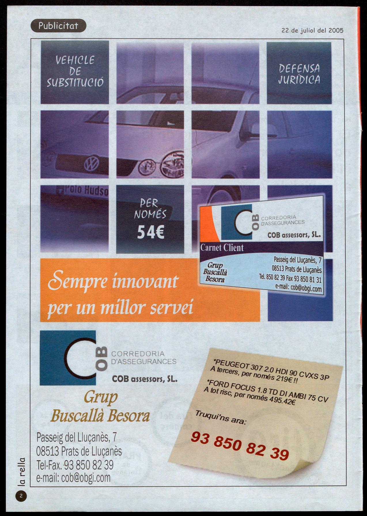 COB assessors, SL. "PEUGEOT3A tercers Pe 072.0 HDI90 evx. ,.,. nOmés 219€ ff S 3P FORD¡=¡A lotris DeuS 1.8 TD D <; Pernomés 495 IAMBI 75 ev .42€ lrllqUi'nsara: