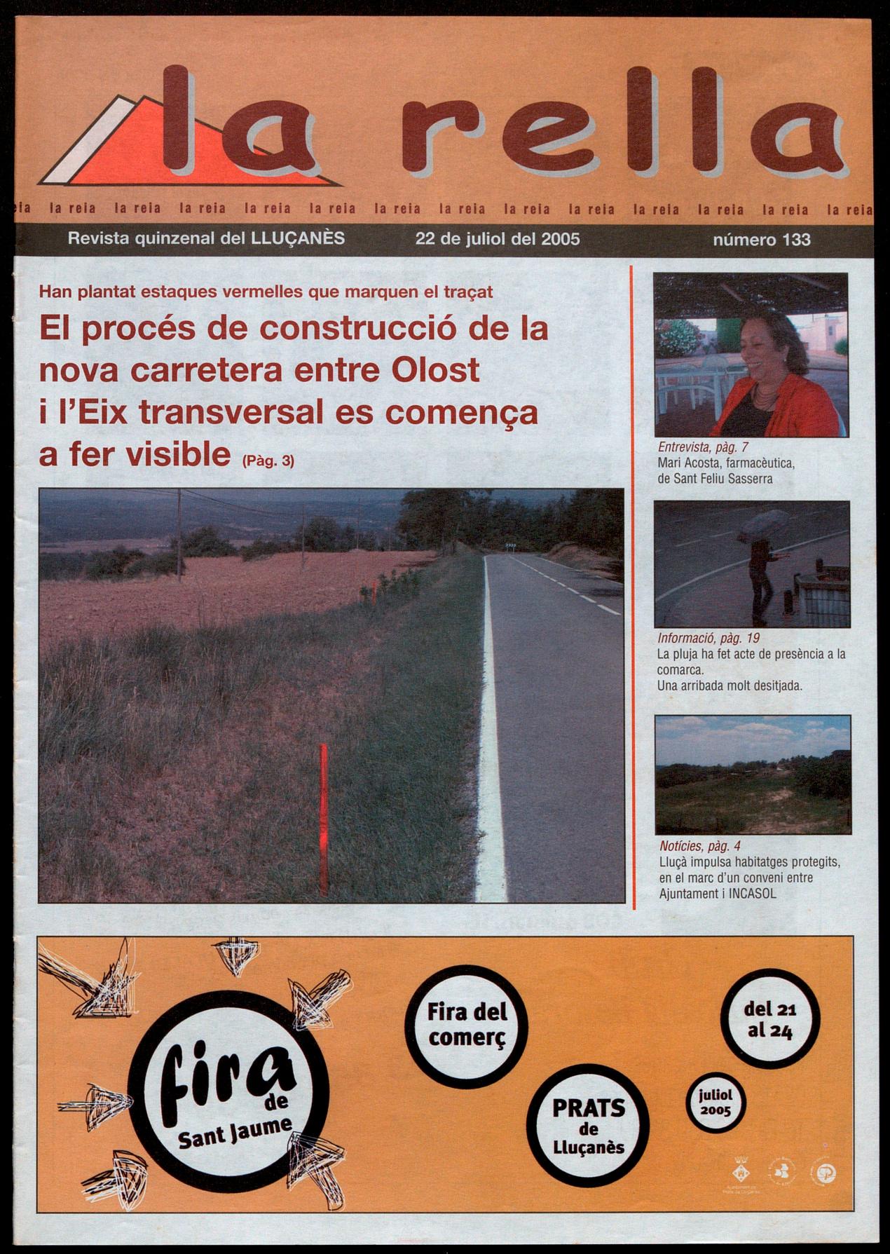 Llu�anè5.· L'empresa adjudicatària de les obres d'accés de la carretera d'Olost a l'Eix transversal ha començat aquests dies a senyalitzar els trams per on es farà el nou traçat, unes senyalitzacions que es veuen als laterals de la carretera C-154. Aquest nou traçat, que comença en el quilòmetre 18'7 d'aquesta