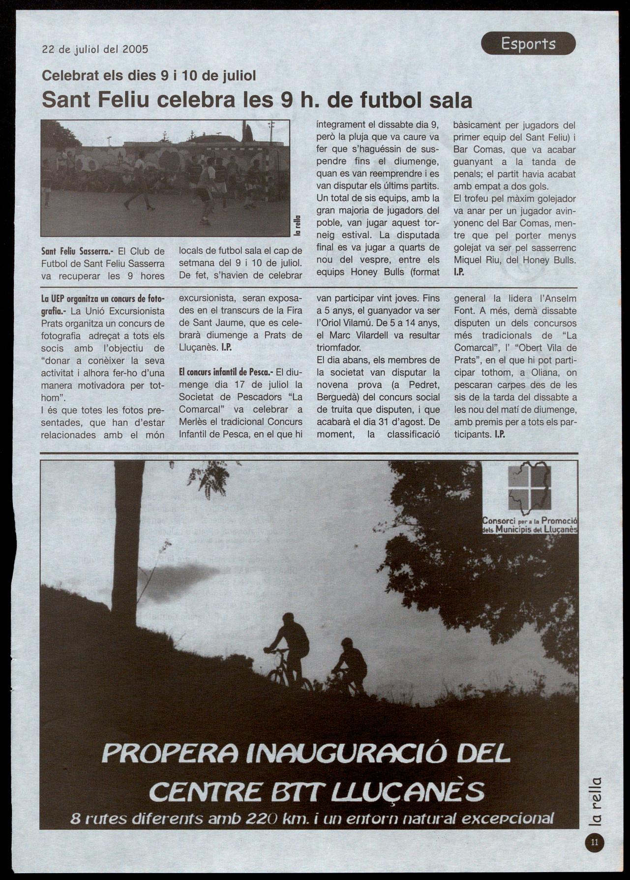El tennis celebra la seva festa anual.Era la Novena Festa del Tennis pradenc, va constar del que ja és tradicional. A la tarda del dissabte dia 9 de juliol, es va celebrar la final del torneig infantil de tennis, entre el Jordi Costa el Rubèn