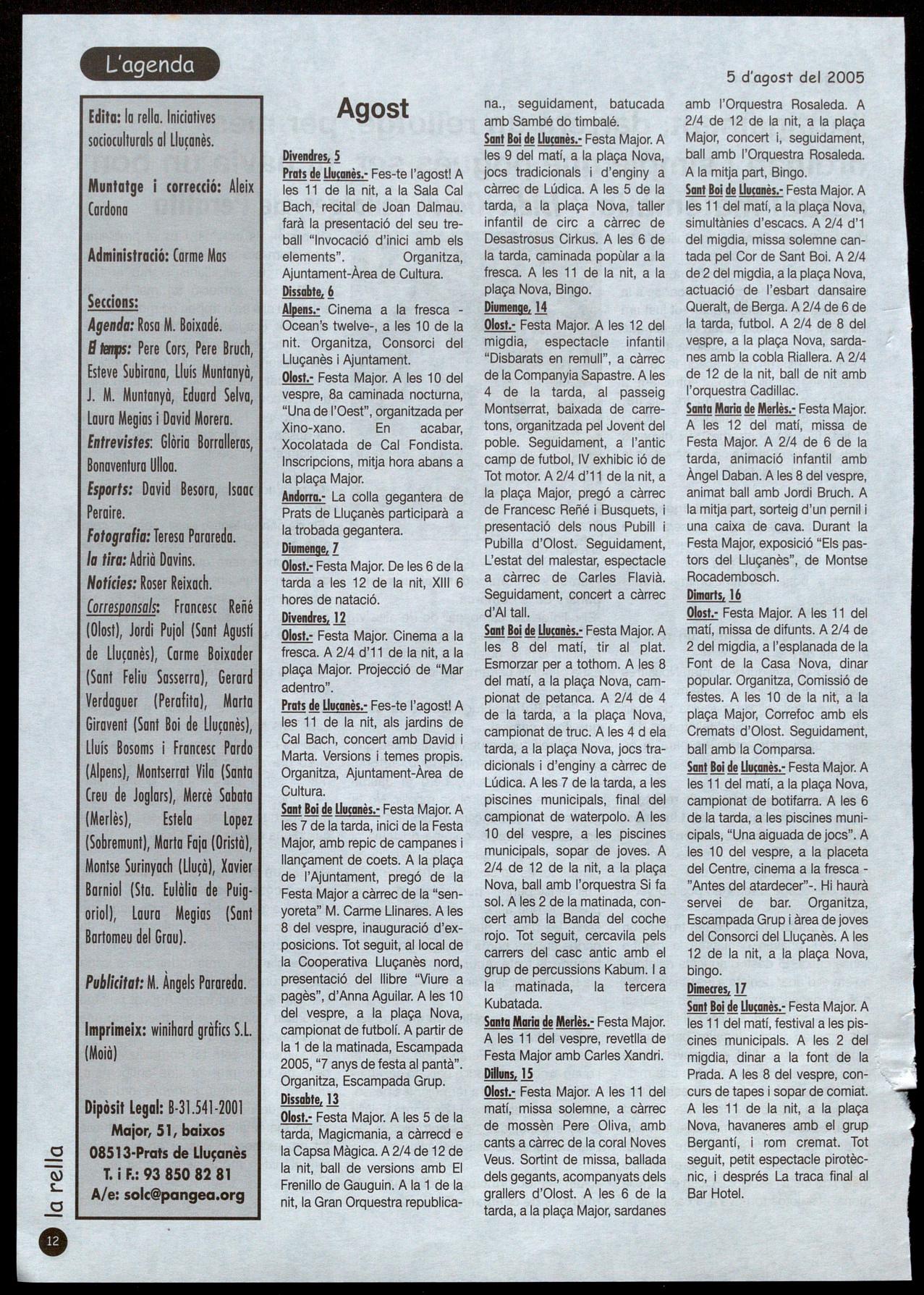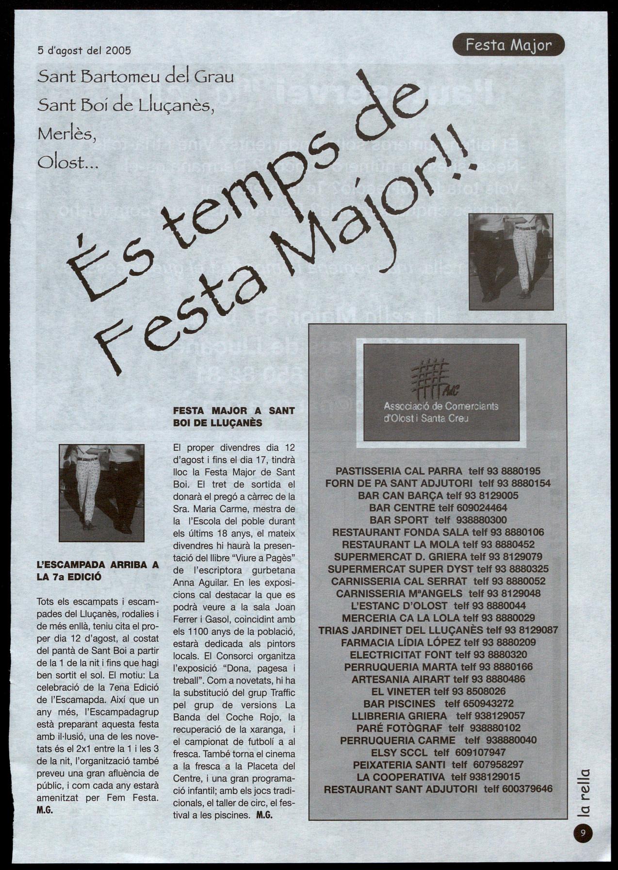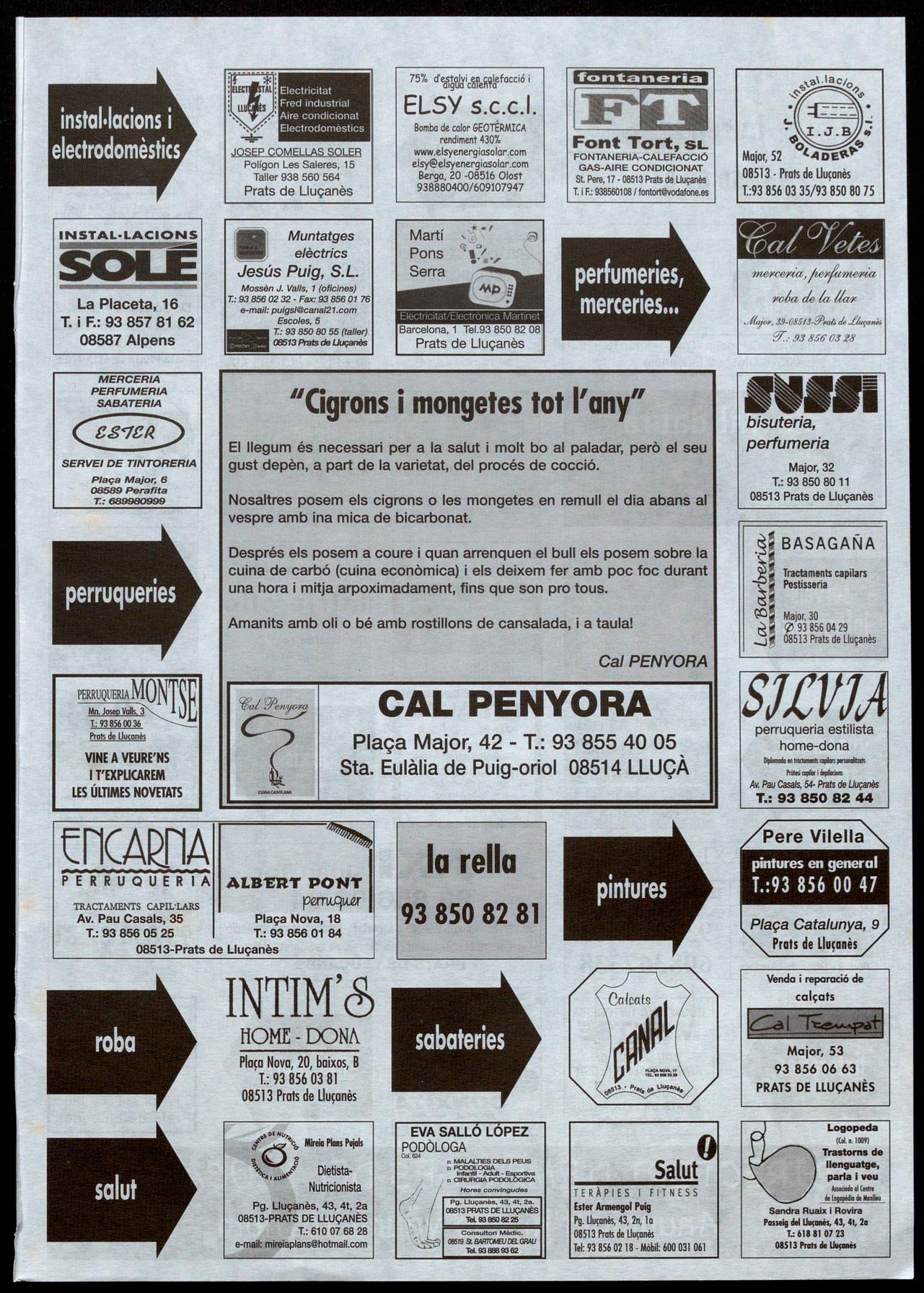 Plaça Majar, 42 - T.: 93 855 40 05 Sta. Eulàlia de Pulq-oriol 08514 LLUÇÀ