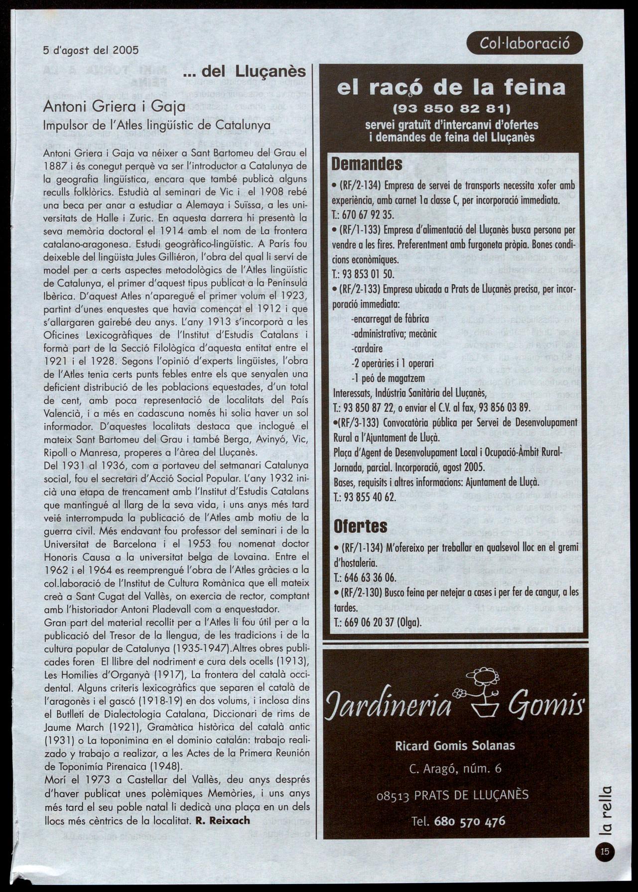 Escoles,5 T.: 93 850 80 55 (taller) ŒJ5t3 Prats de Uuçanès