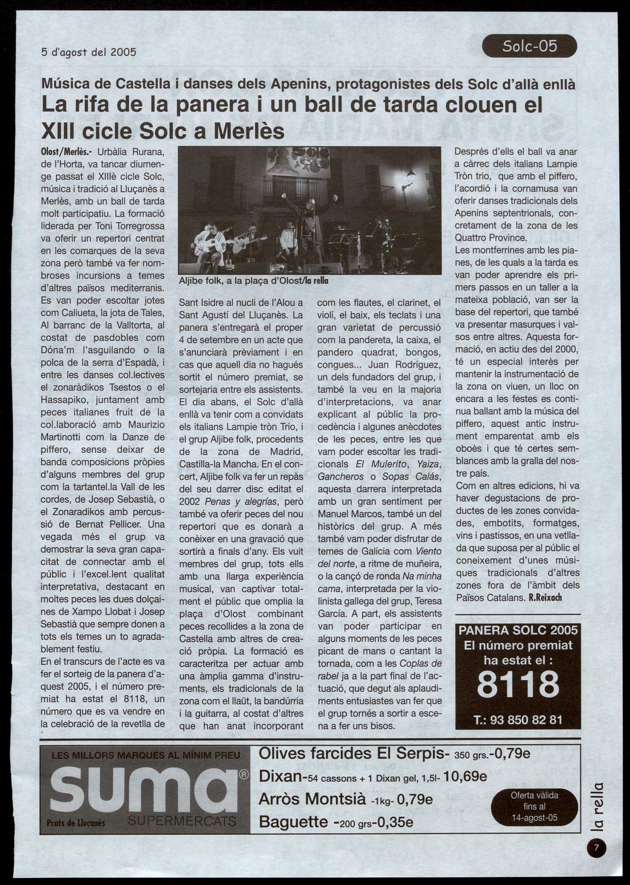Ela valencians Sonadors de la Guaita, que actuaven per primera vegada al Solc, van tenir també molt bona acceptació en el concert, amb moltes peces ballables, que van oferir previ al ball. Liderats per Josemi Sánchez, un dels més reconeguts sonadors de dolçaina que hi ha actualment, van interpretar temes diversos com padobles, marxes mores, jotes o boleros, tot amanit amb una manera especial d'interpretar molt característica pels arranjaments fets pels mateixos músics amb algunes peces del seu darrer treball discogràfic Guaita i balla, editat e12003.