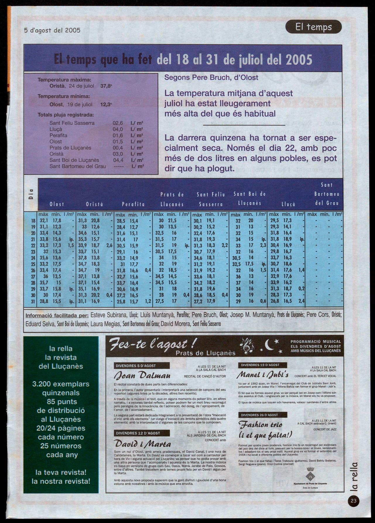 del 18 al 31 de juliol del 2005