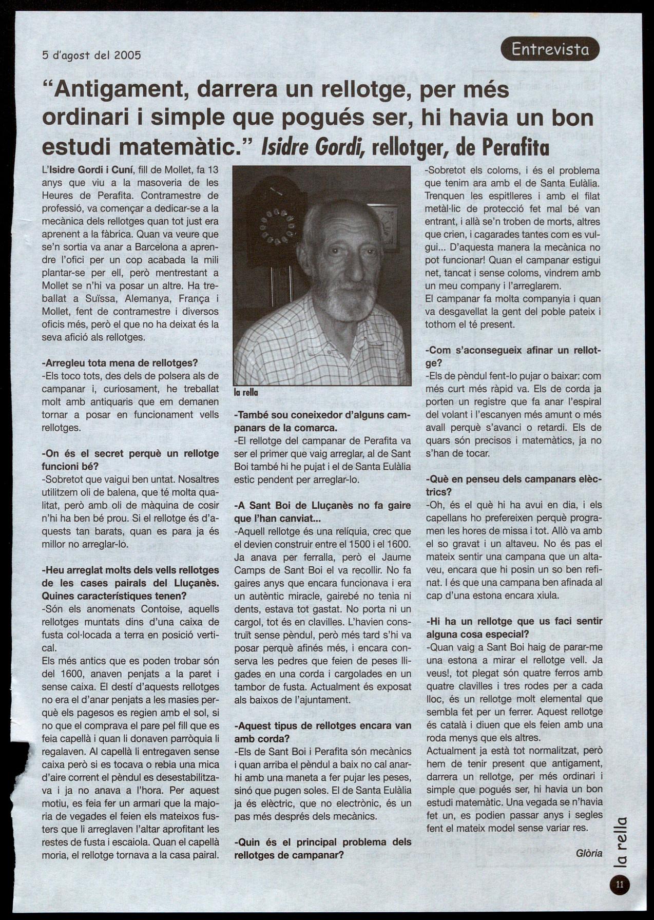 Isidre Gordi, rellotger, de Perafita