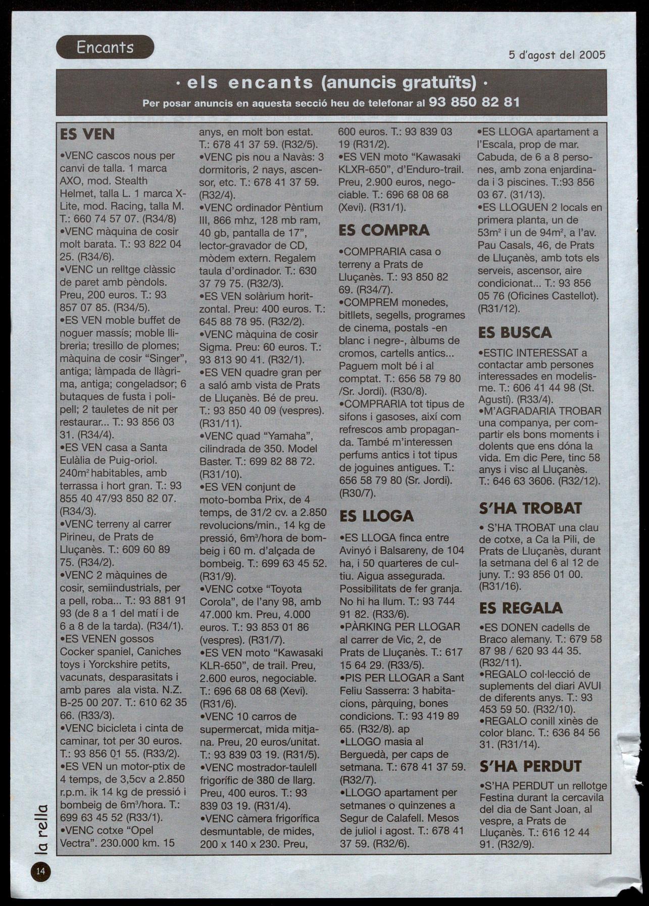 MAJOR, 44, bis T.: 93 850 81 92 PRATS DE LLUÇANES