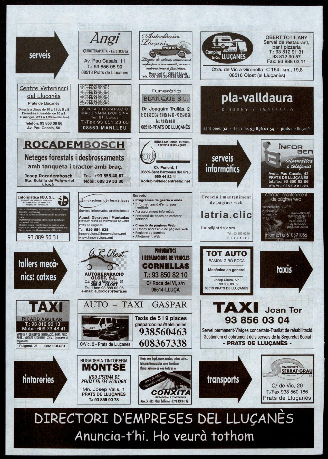 Informació facilitada per: Esteve Subirana, UU¡Ò; Lluís Muntanyà, Perafita; Pere Bruch, Olost; Josep M. Muntanyà, Prats de Uu¡anès; Pere Cors, Oristò; � s; Eduard Selva, Sant Boi de Uu¡anès; Laura Megias, Sant Bartomeu del Grau; David Morera, Sant Feliu Sasserra
