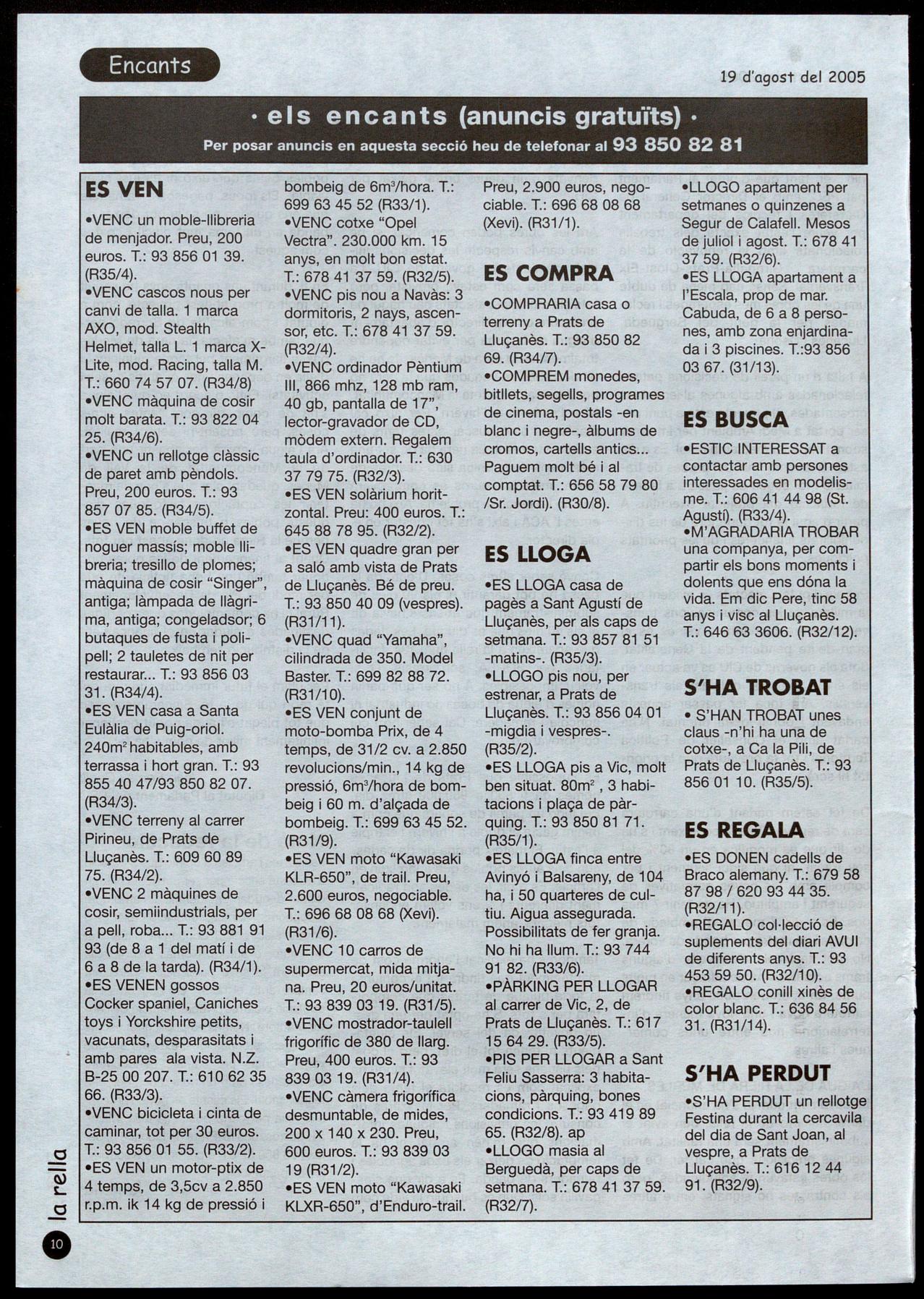 Av. Pau Casals, 35 Plaça Nova, 18 T.: 93 856 05 25 T.: 93 856 01 8408513-Prats de Lluçanès