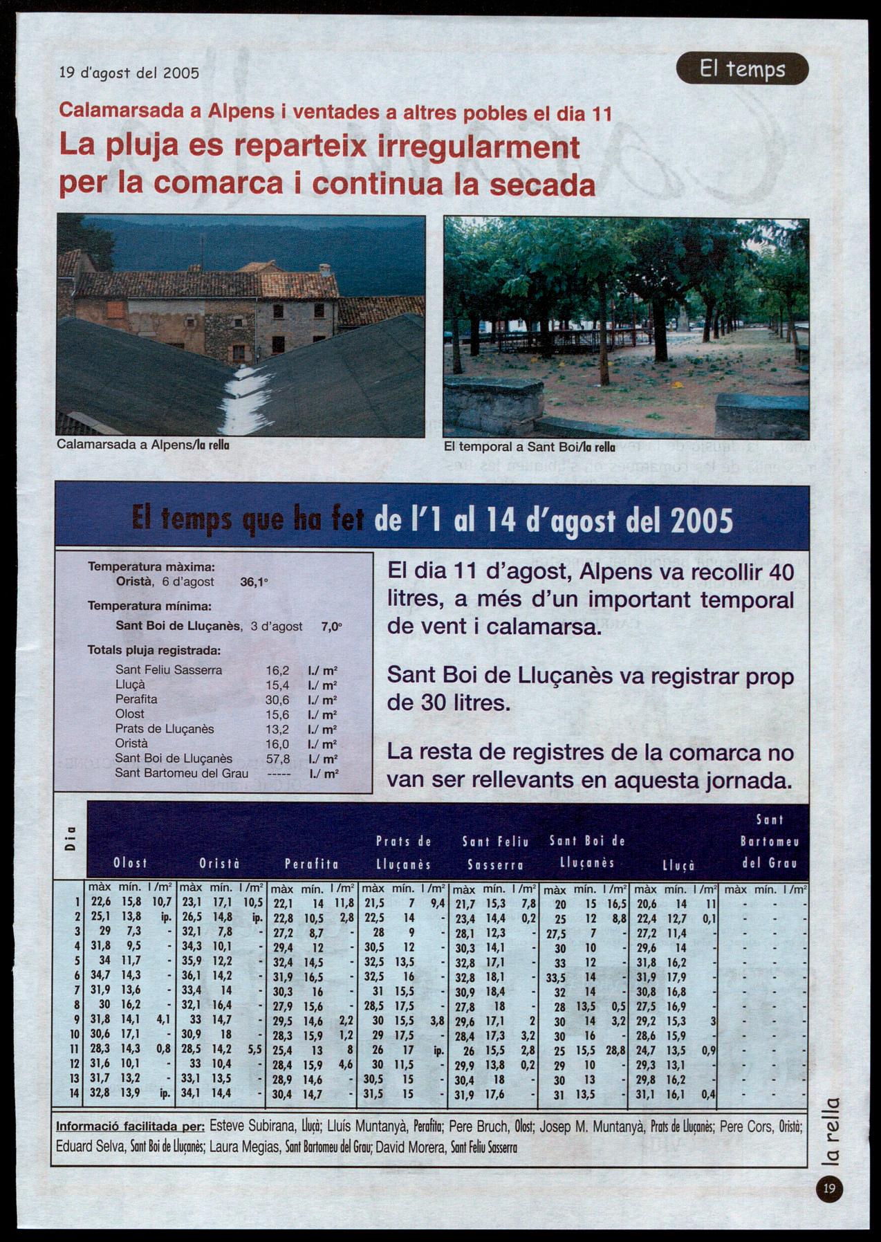 El dia 11 d'agost, Alpens va recollir 40 litres, a més d'un important temporal de vent i calamarsa.