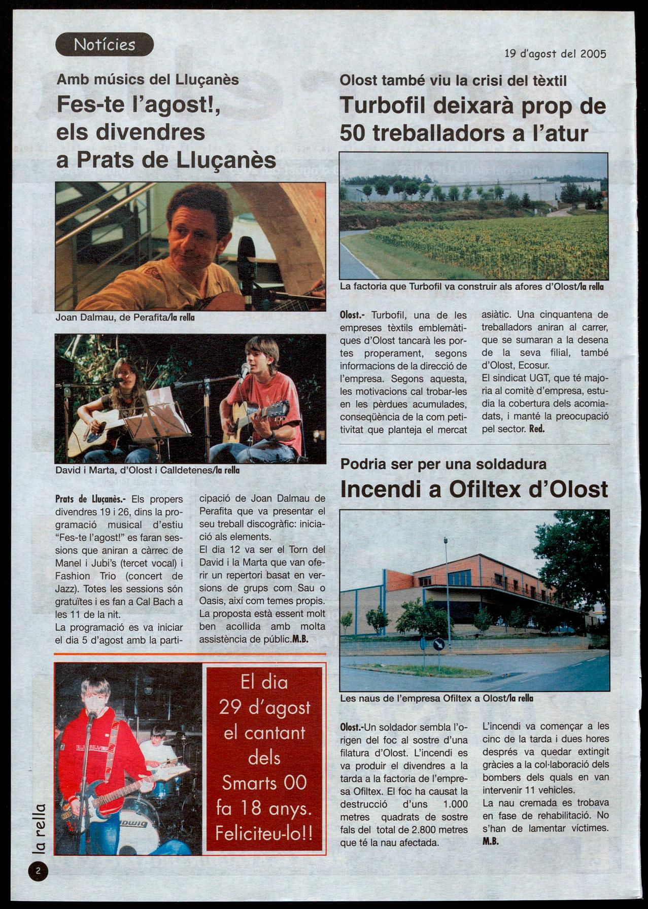 Olost." Turbofil, una de les empreses tèxtils emblemàtiques d'Olost tancarà les portes properament, segons informacions de la direcció de l'empresa. Segons aquesta, les motivacions cal trobar-les en les pèrdues acumulades, conseqüència de la com petitivitat que planteja el mercat