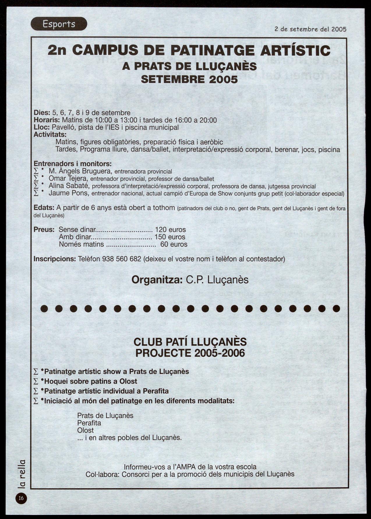 L ·Iniciació al món del patinatge en les diferents modalitats: Prats de Lluçanès Perafita Olost i en altres pobles del Lluçanès.