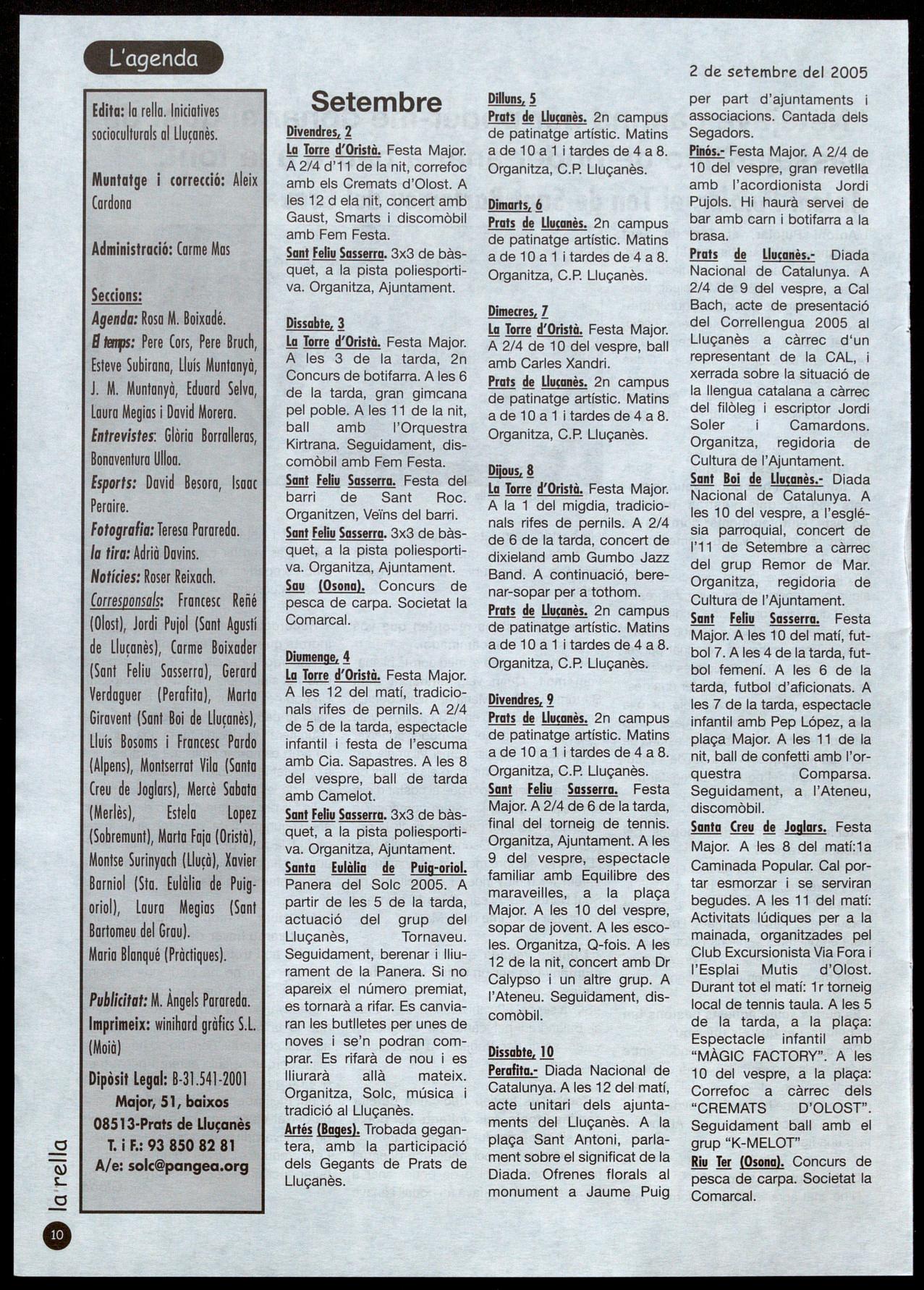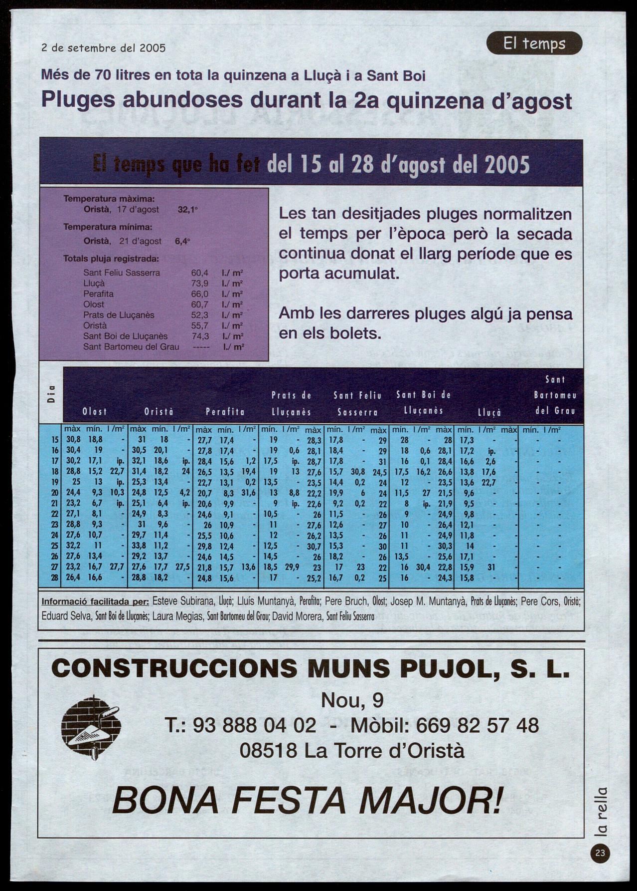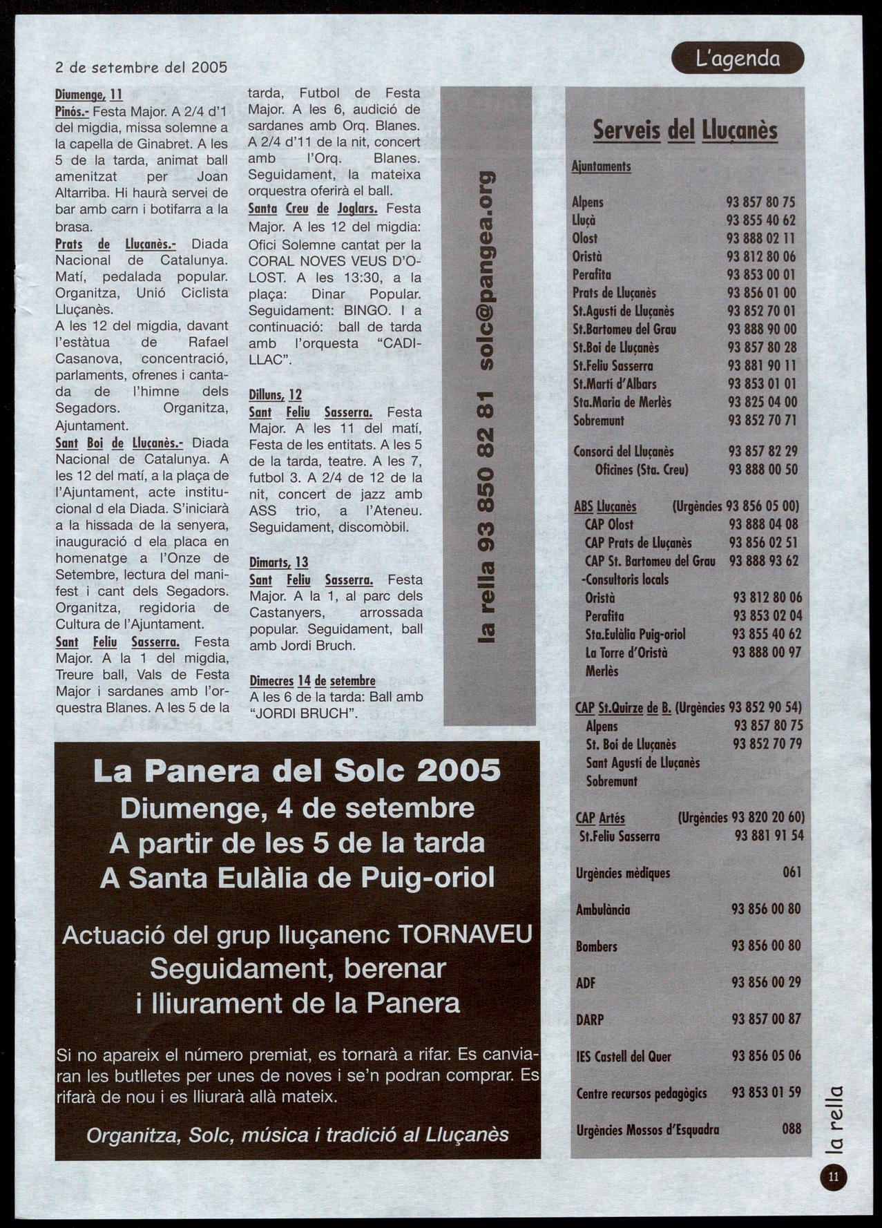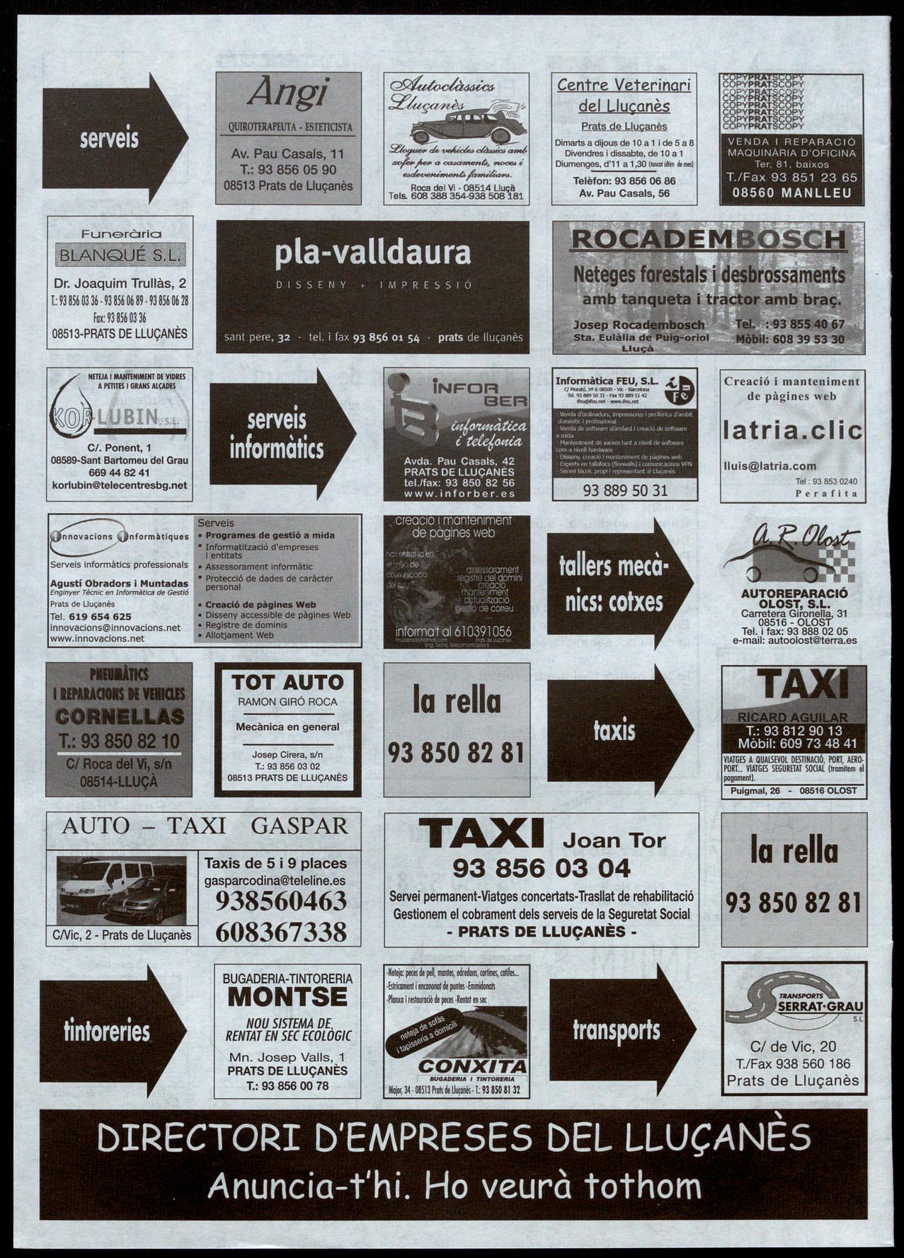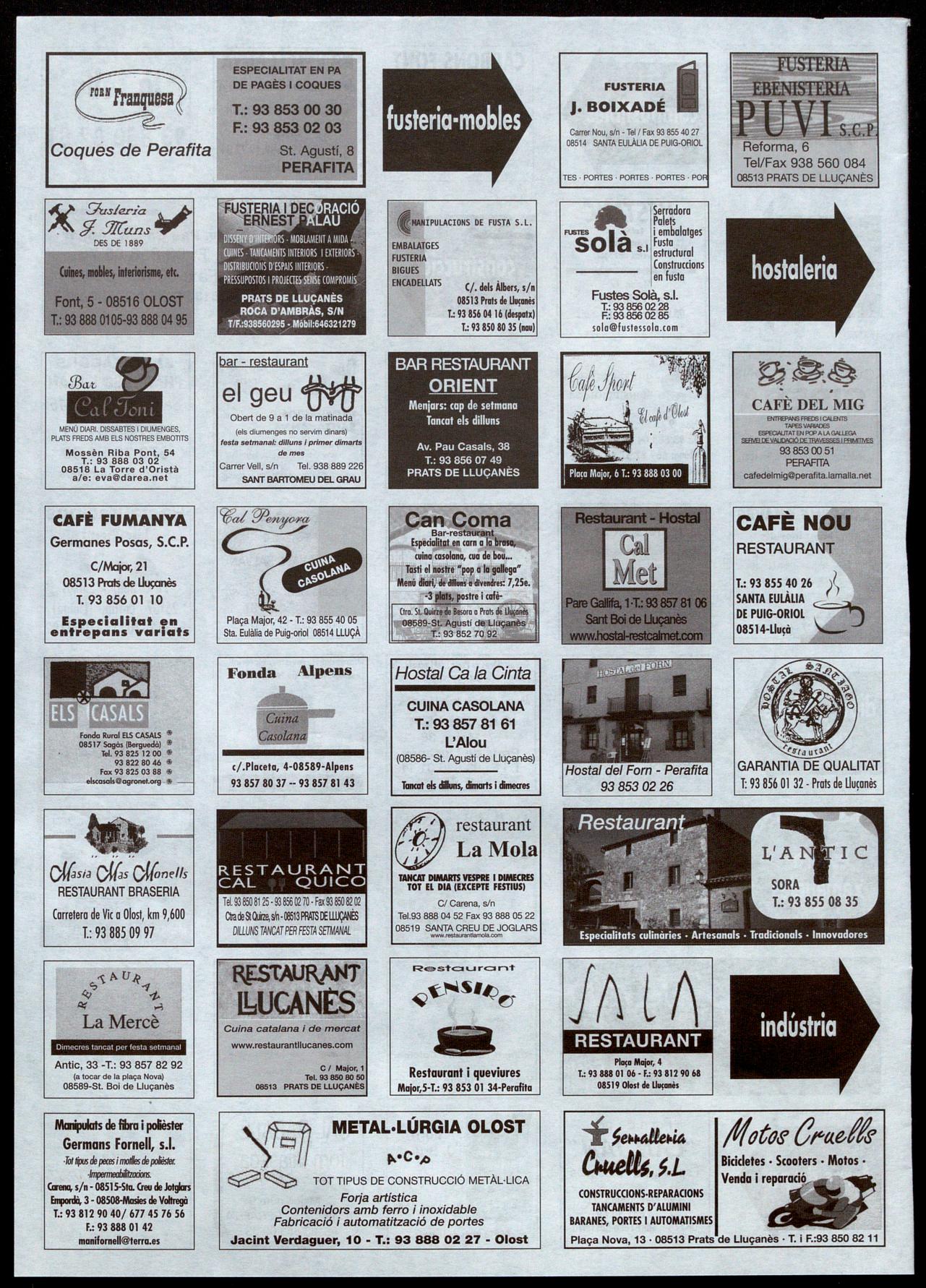 Informació facilitada per: Esteve Subirana, lIu¡à; Lluís Muntanyà, Perafita; Pere Bruch, Olost; Josep M. Muntanyà, Prats de lluçanès; Pere Cors, Oristà; Eduard Selva, Sant Boide lIu¡anès; Laura Megias, SantBartomeu del Grau; David Morera, Sant feliu Sasserra