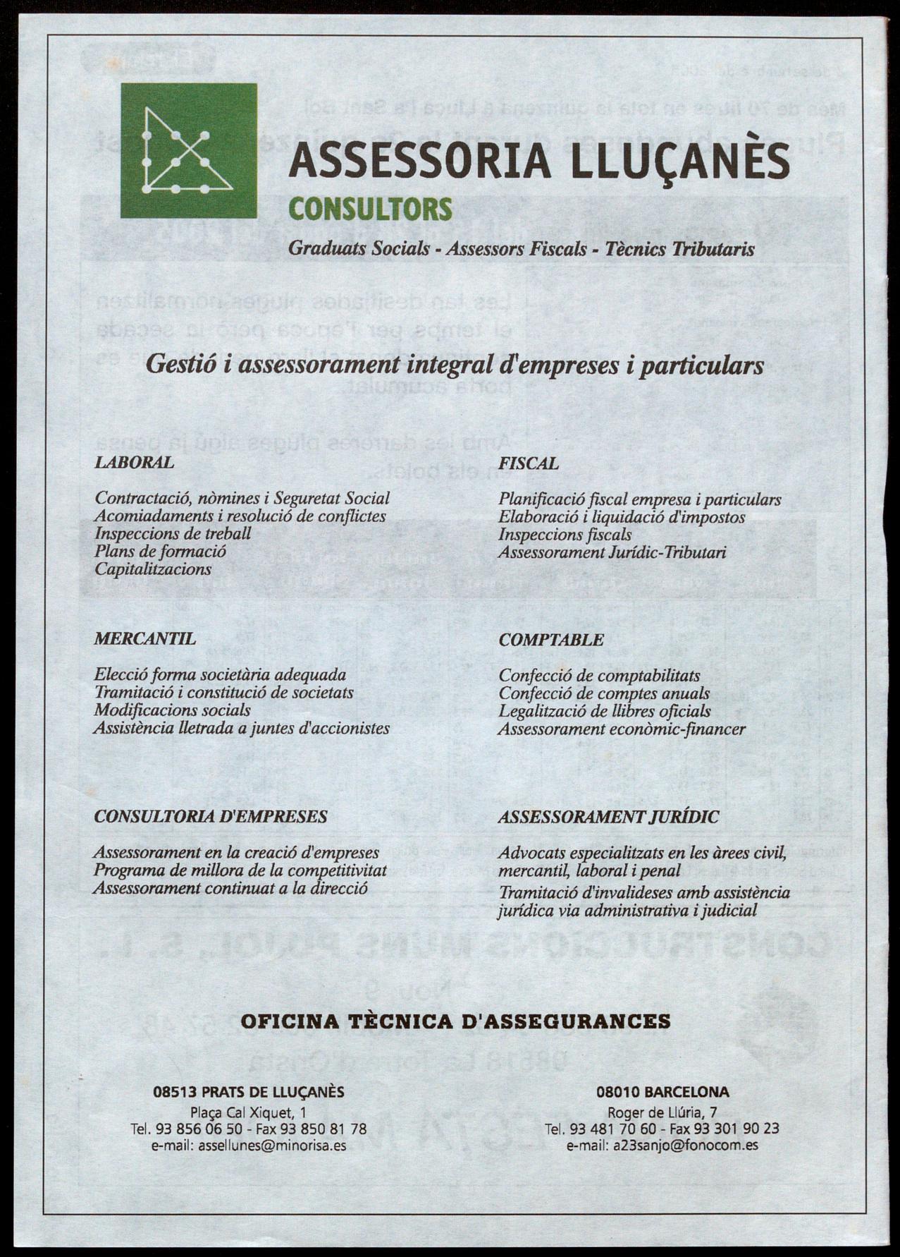 Llu�anès.· La representació lluçanesa a la tercera territorial catalana ha quedat reduïda aquesta temporada a dos equips, l'Olost i el Sant Boi, que després dels ascensos del Sant Feliu i Sant Bartomeu la lliga passada, del Pradenc una temporada abans, disputaran la competíció al grup 4.