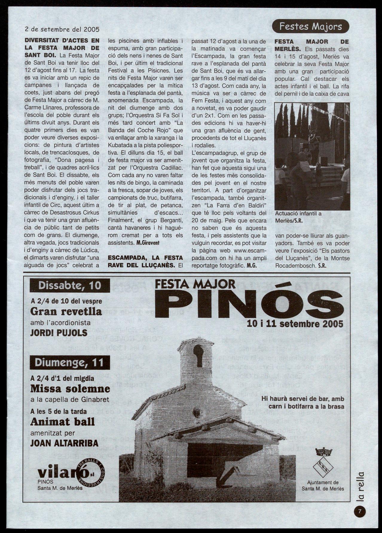 A Sant Bartomeu el programa de la Festa d'aquest 2005 incloïa també una variada oferta, amb tir al plat, campionat 3x3 de bàsquet, les finals dels tornejos locals de