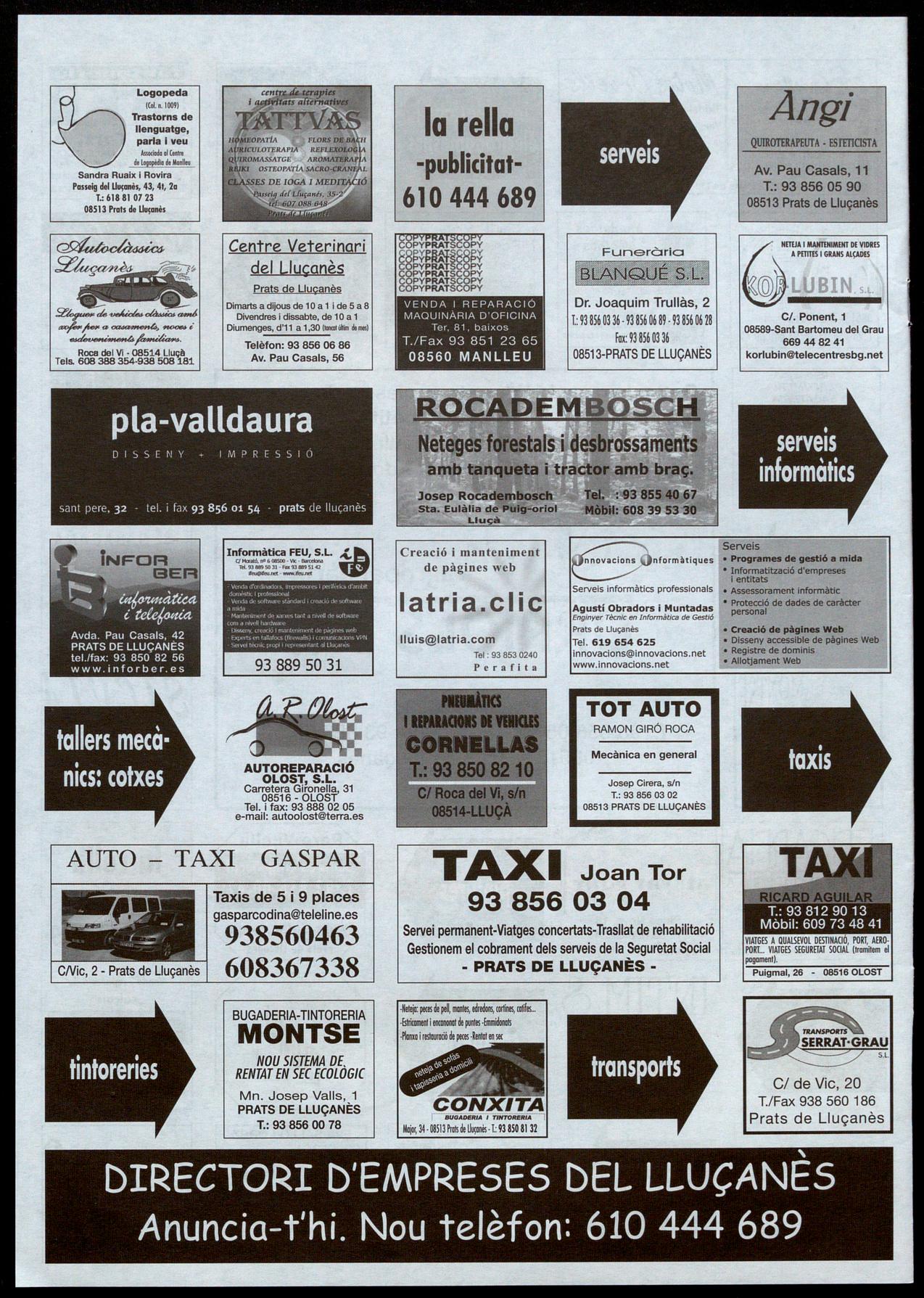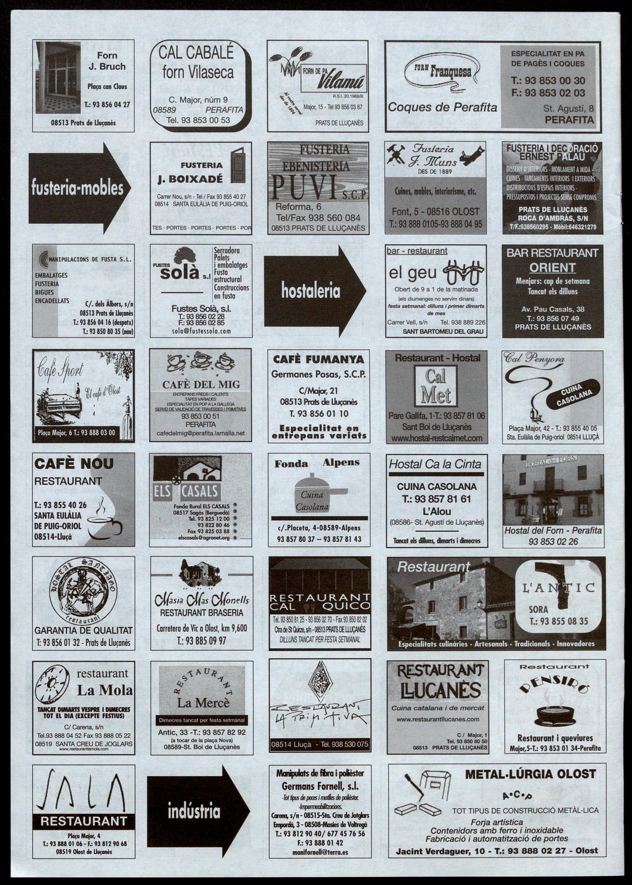 Escoles, 5 - T.: 93 856 06 74 - Prats de Llucanès
