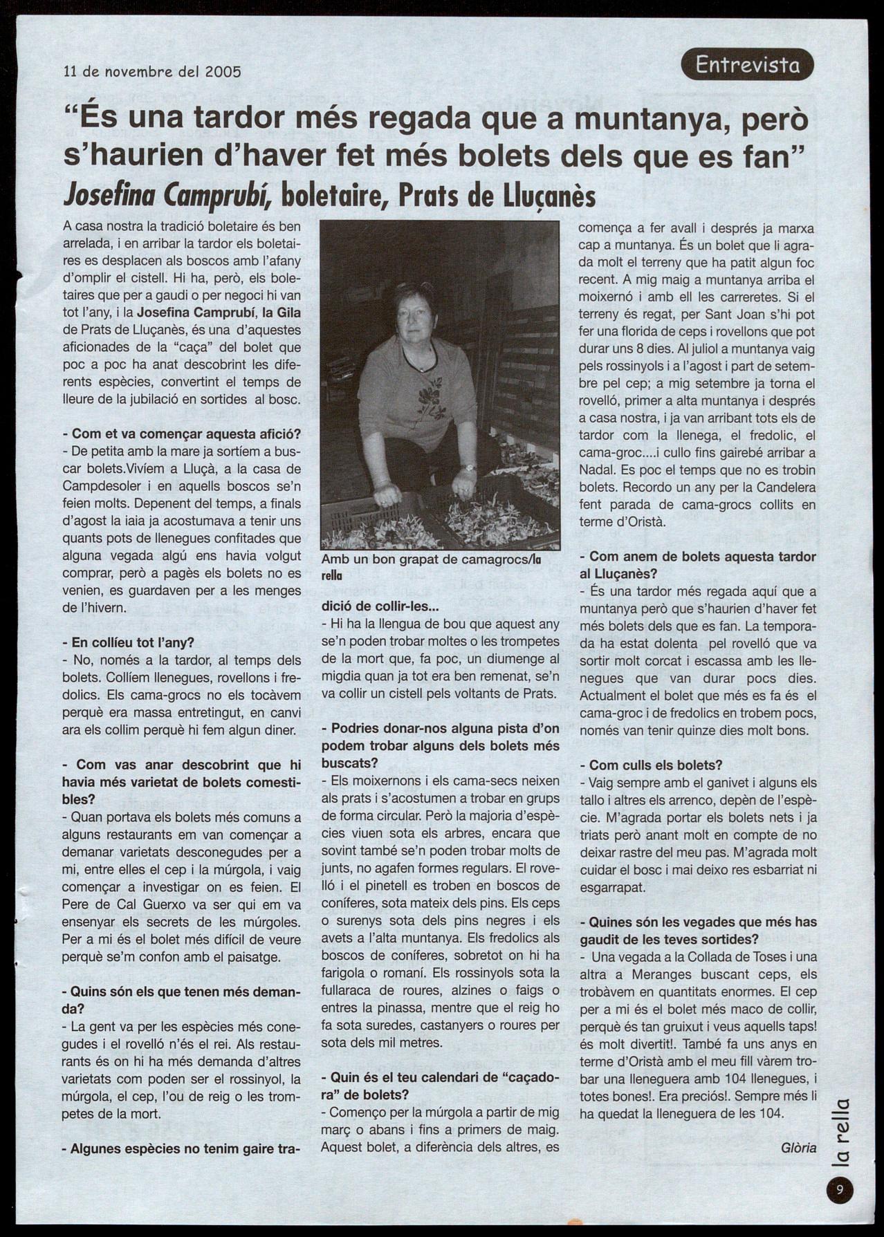 Fins fa prop de quatre anys sortia diàriament a fer un tomb pel poble, moltes vegades fins l'ermita de Lurdes, i conservava encara una bona memòria. R.R.