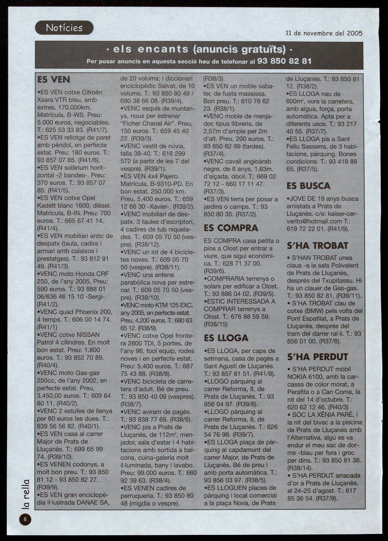 Escoles,5 T.: 93 850 80 55 (taller) 00513 Prats de Uuçanès