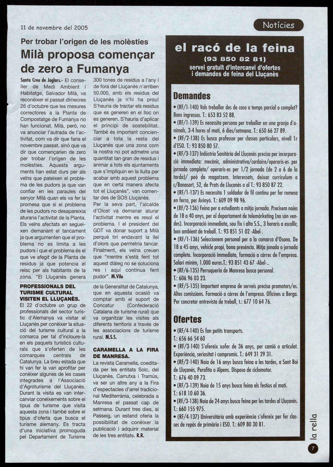 (93 850 82 81) servei gratuït d'intercanvi d'ofertes i demandes de feina del Lluçanès