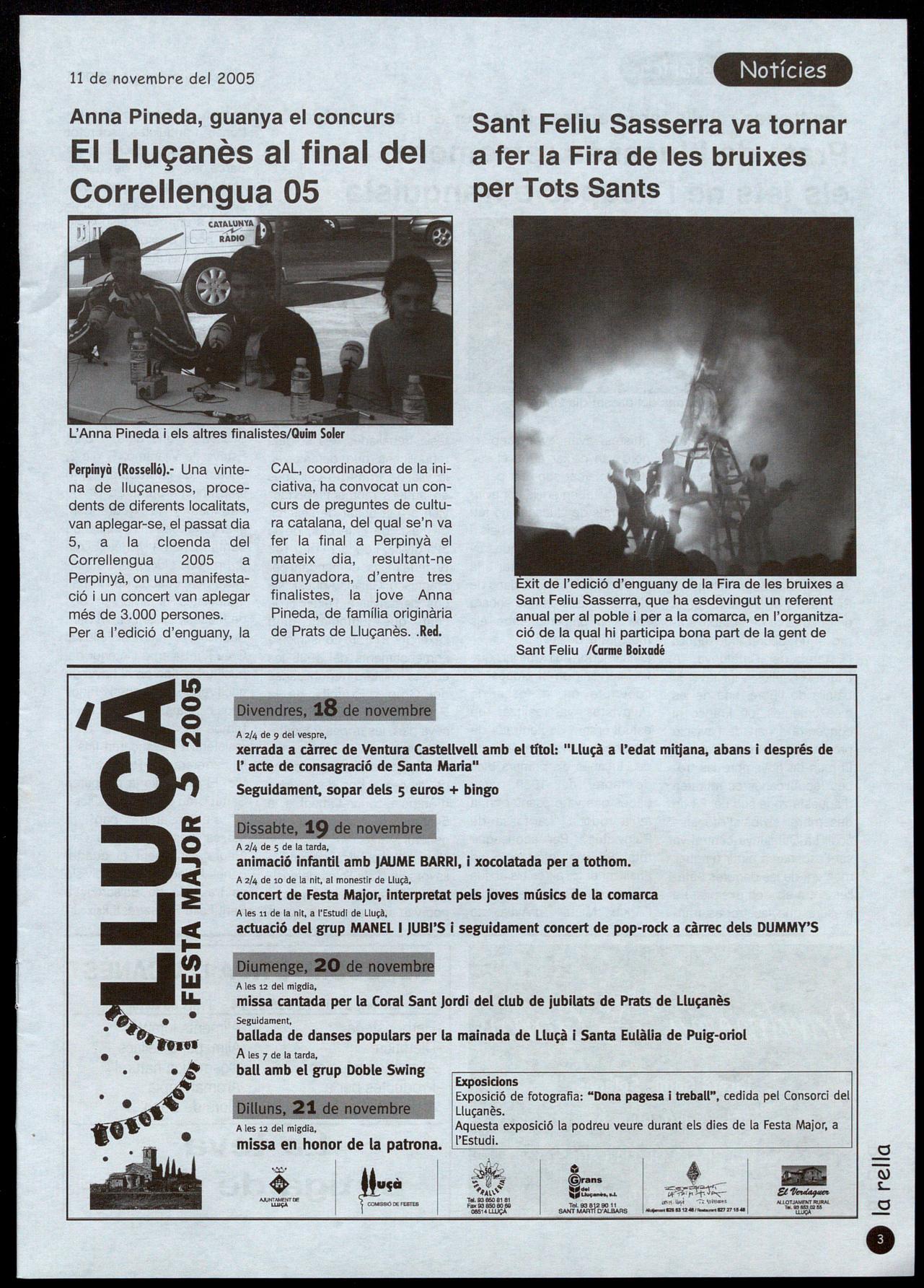 Perpinyà (Rosselló).- Una vintena de lluçanesos, procedents de diferents localitats, van aplegar-se, el passat dia 5, a la cloenda del Correllengua 2005 a Perpinyà, on una manifestació i un concert van aplegar més de 3.000 persones. Per a l'edició d'enguany, la