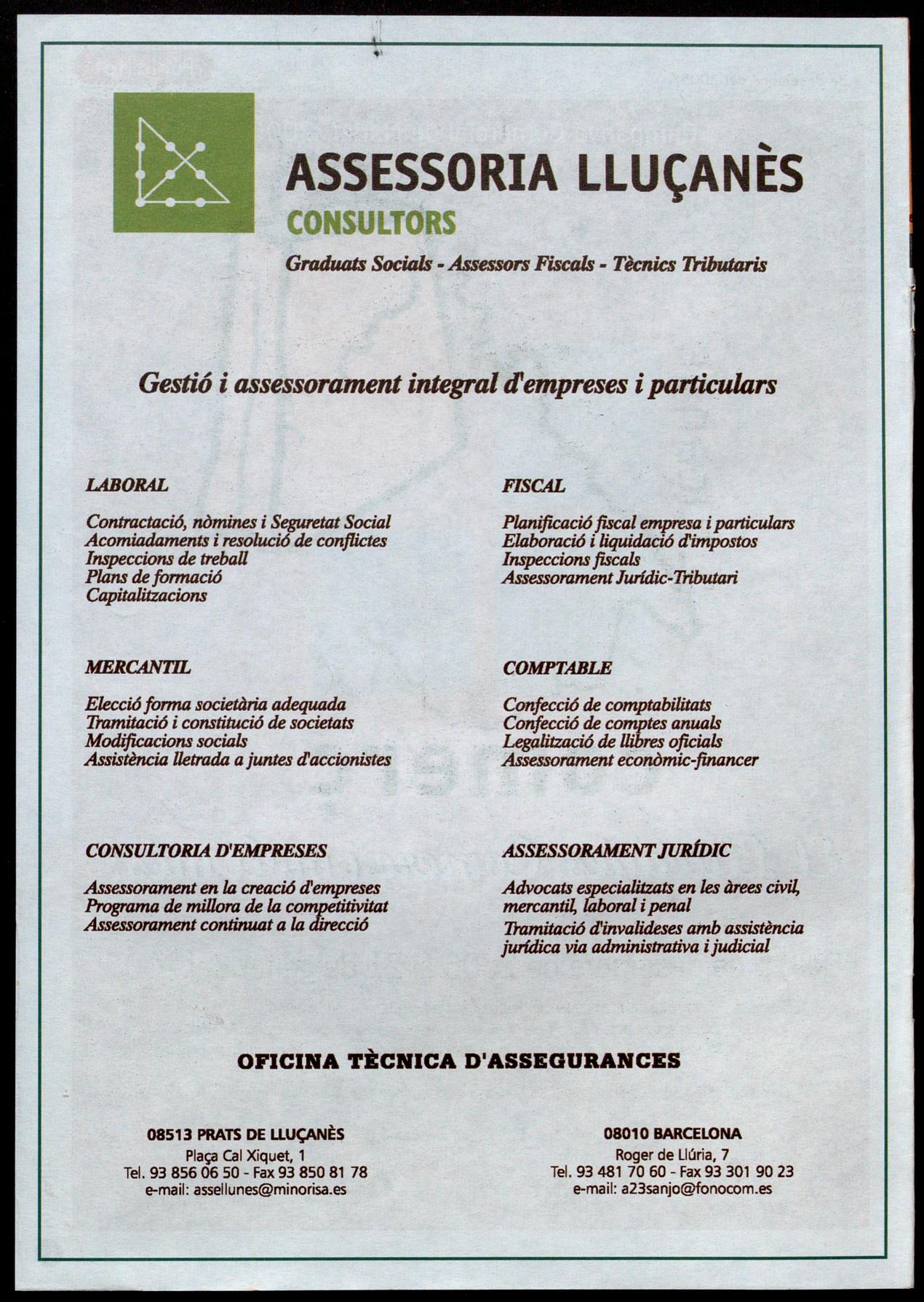 Per posar anuncis en aquesta secció heu de telefonar al 93 850 82 81