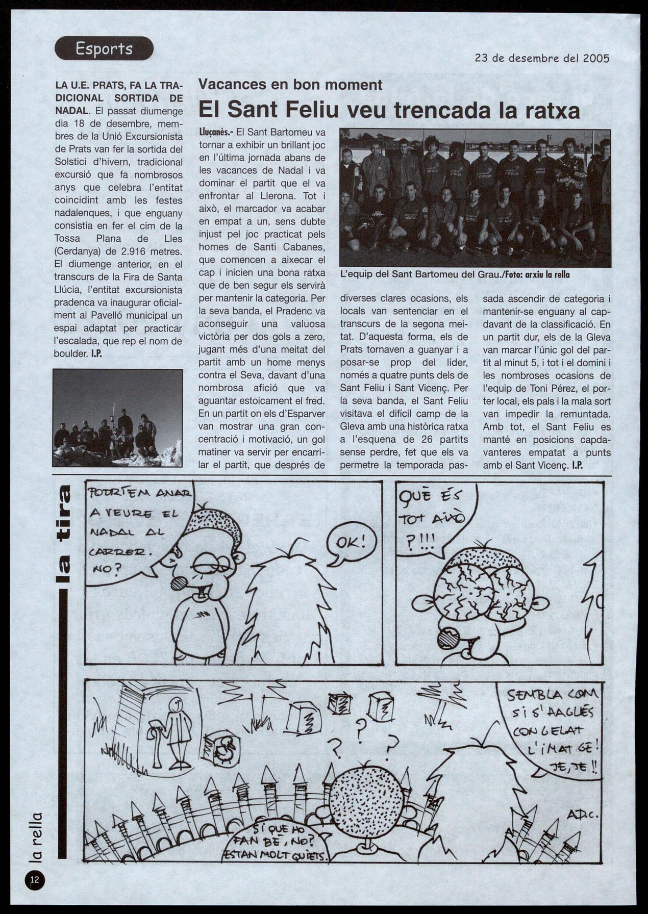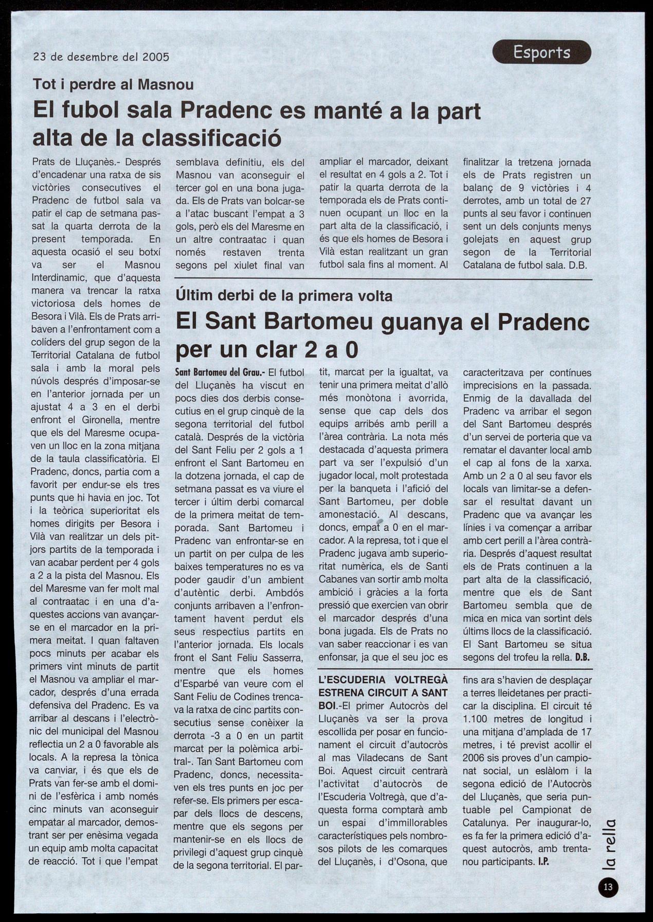 El Sant Bartomeu, segon al trofeu la rella, després de guanyar el Pradenc (2-0). pàg. 13