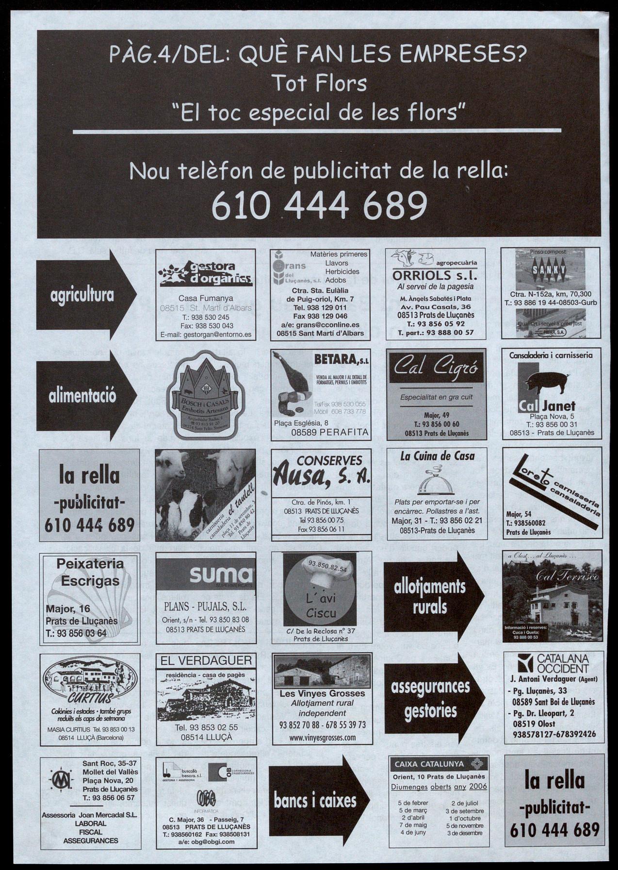 Escoles, 5 - T.: 93 856 06 74 - Prats de Llucanès