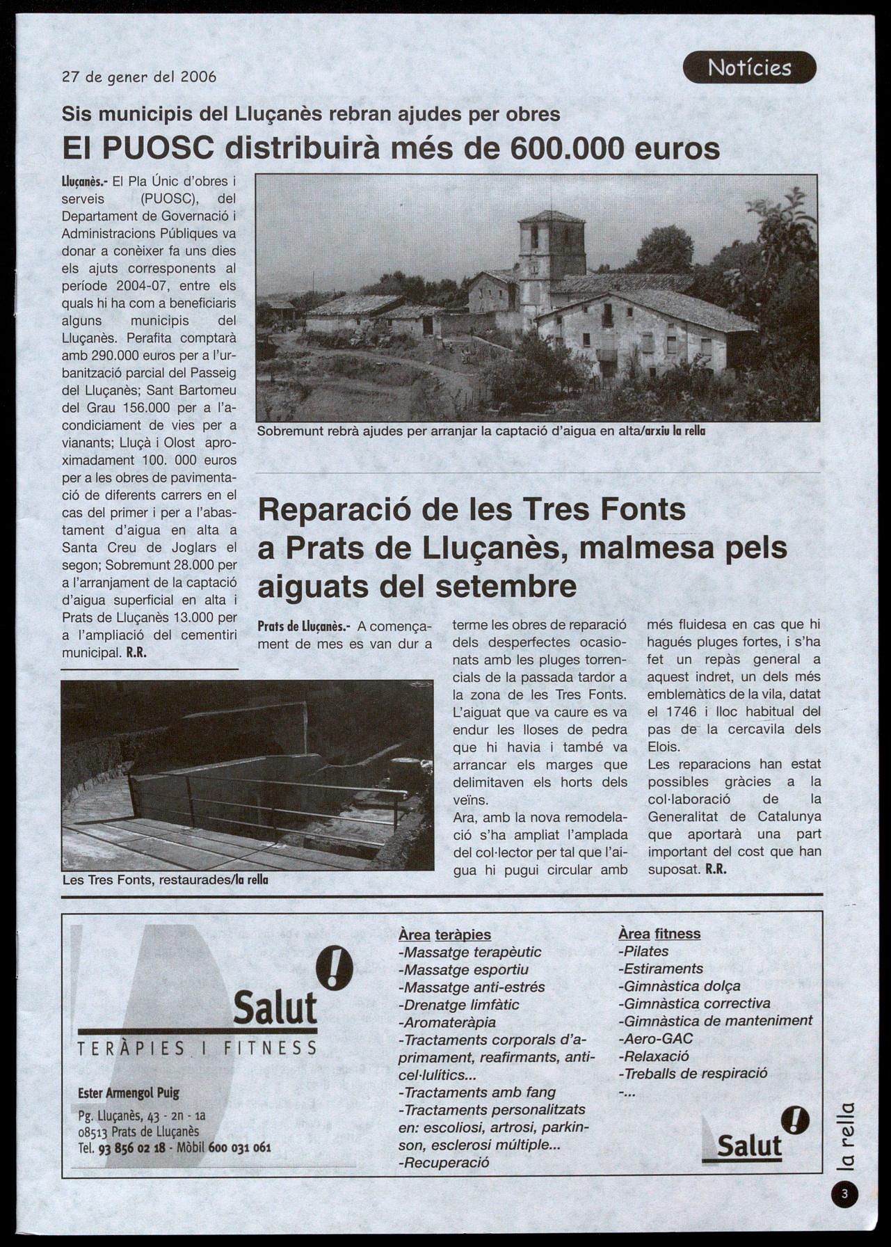 Notícies, pàg. 3 Més de 600.000 euros del Puosc al Lluçanès.