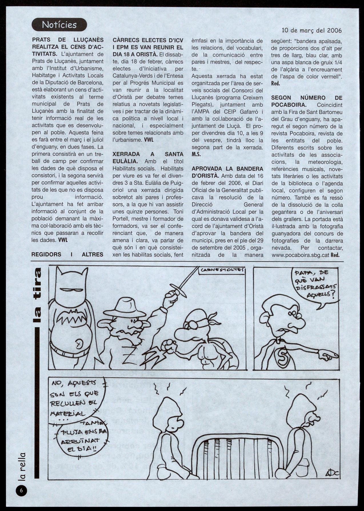 SEGON NÚMERO DE POCABOIRA. Coincidint amb la Fira de Sant Bartomeu del Grau d'enguany, ha aparegut el segon número de la revista Pocaboira, revista de les entitats del poble. Diferents escrits sobre les activitats de les associacions, la meteorologia, referències musicals, novetats literàries o les activitats de la biblioteca o l'agenda local, configuren el segon número. També es fa ressò de la dissolució de la colla gegantera o de l'aniversari dels grallers. La portada està il-lustrada amb la fotografia guanyadora del concurs de fotografies de la darrera nevada. Per contactar, www.pocaboira.sbg.cat Red.