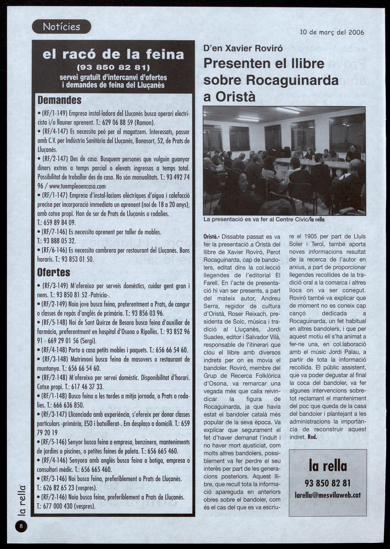 Aquesta xerrada ha estat organitzada per l'àrea de serveis socials del Consorci del Lluçanès (programa Creixem Plegats), juntament amb I'AMPA del CEIP Gafarró i amb la col.laboració de l'ajuntament de Lluçà. El proper divendres dia 10, a les 9 del vespre, tindrà lloc la segona part de la xerrada. M.S.