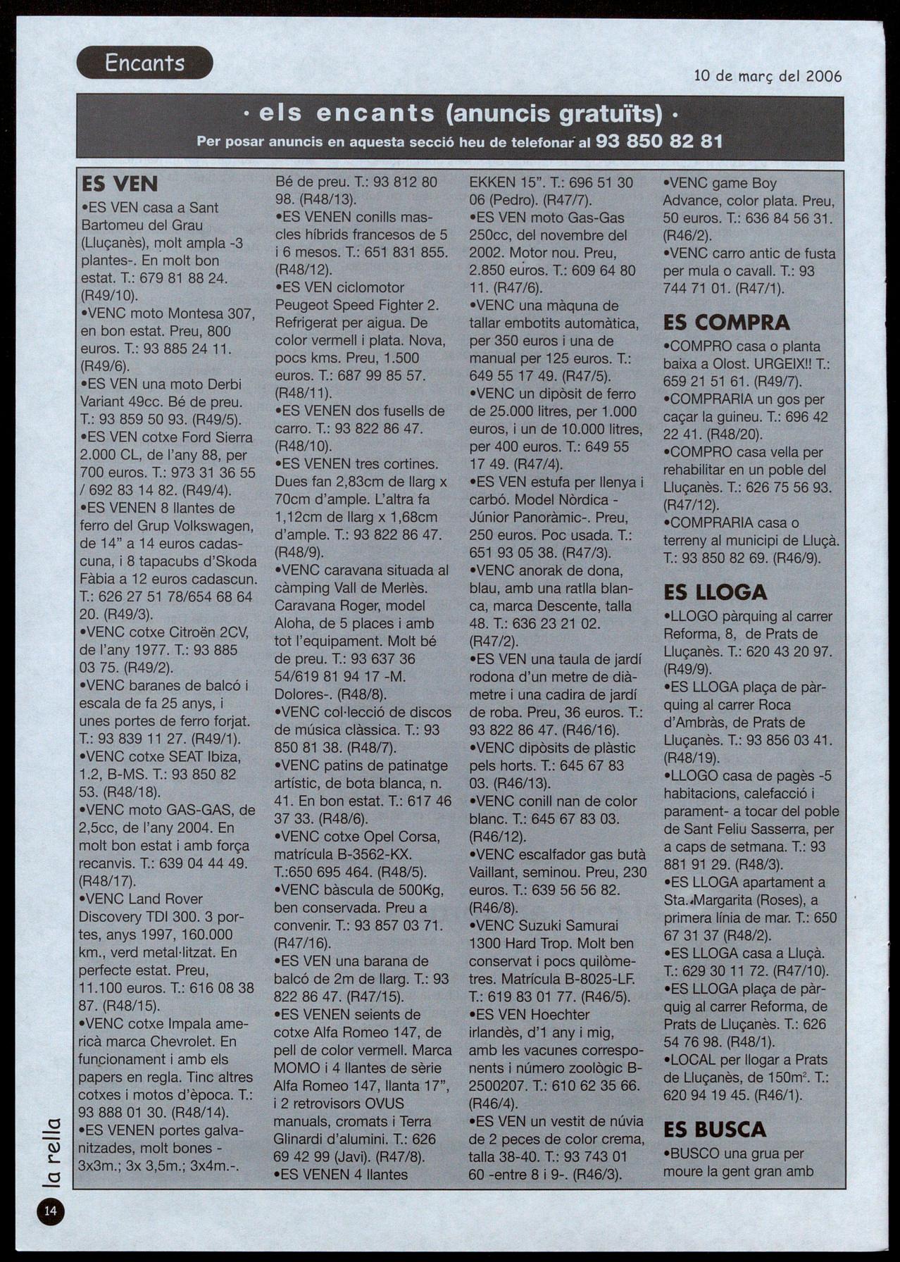 MAJOR, 44, bis T.: 93 850 81 92 PRATS DE LLUÇANÈS