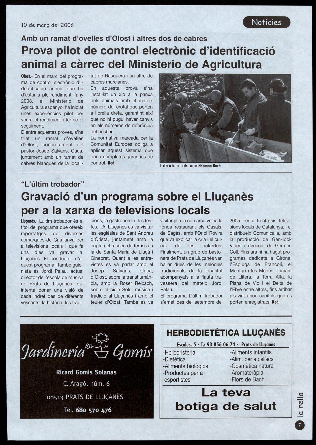 Olost.· En el marc del programa de control electrònic d'identificació animal que ha d'estar a ple rendiment l'any 2008, el Ministerio de Agricultura espanyol ha iniciat unes experiències pilot per veure el rendiment fer-ne el seguiment.