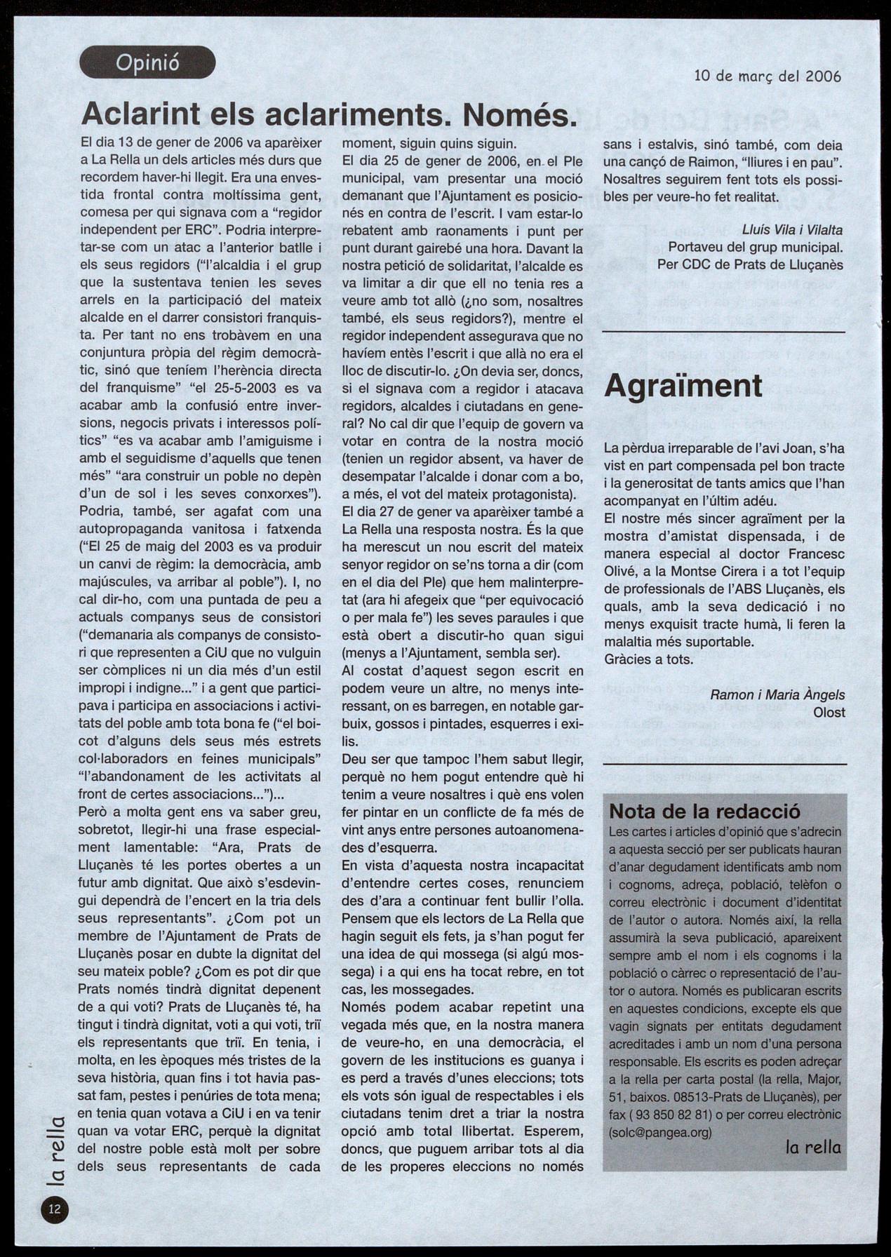 Es parla de boicot per part dels sectors de Sant Bartomeu del Grau favorables a ser del Lluçanès. Notícies, pàg. 3