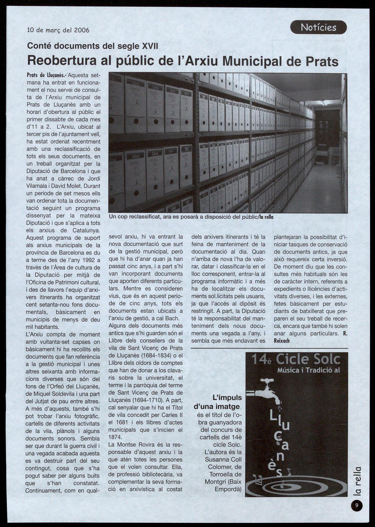 Lluçanès.· Lúltim trobador és el títol del programa que ofereix reportatges de diverses comarques de Catalunya per a televisions locals que fa uns dies va gravar al Lluçanès. El conductor d'aquest programa també guionista és Jordi Palau, actual director de l'escola de música de Prats de Lluçanès, qui intenta donar una visió de cada indret des de diferents vessants, la història, les tradi-