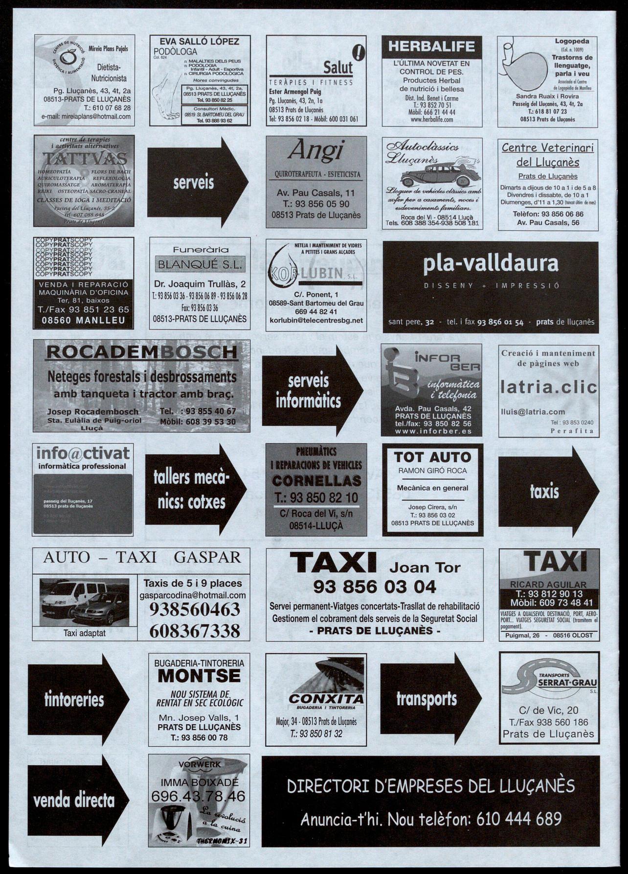 Ai1lomen� lèrmiu o(ús!iu .Prestolgeries,ell.. Pogesia, 15, 2n, 2a 08513 Prats de Lluçanès T.: 93 850 82 17 637 729 801