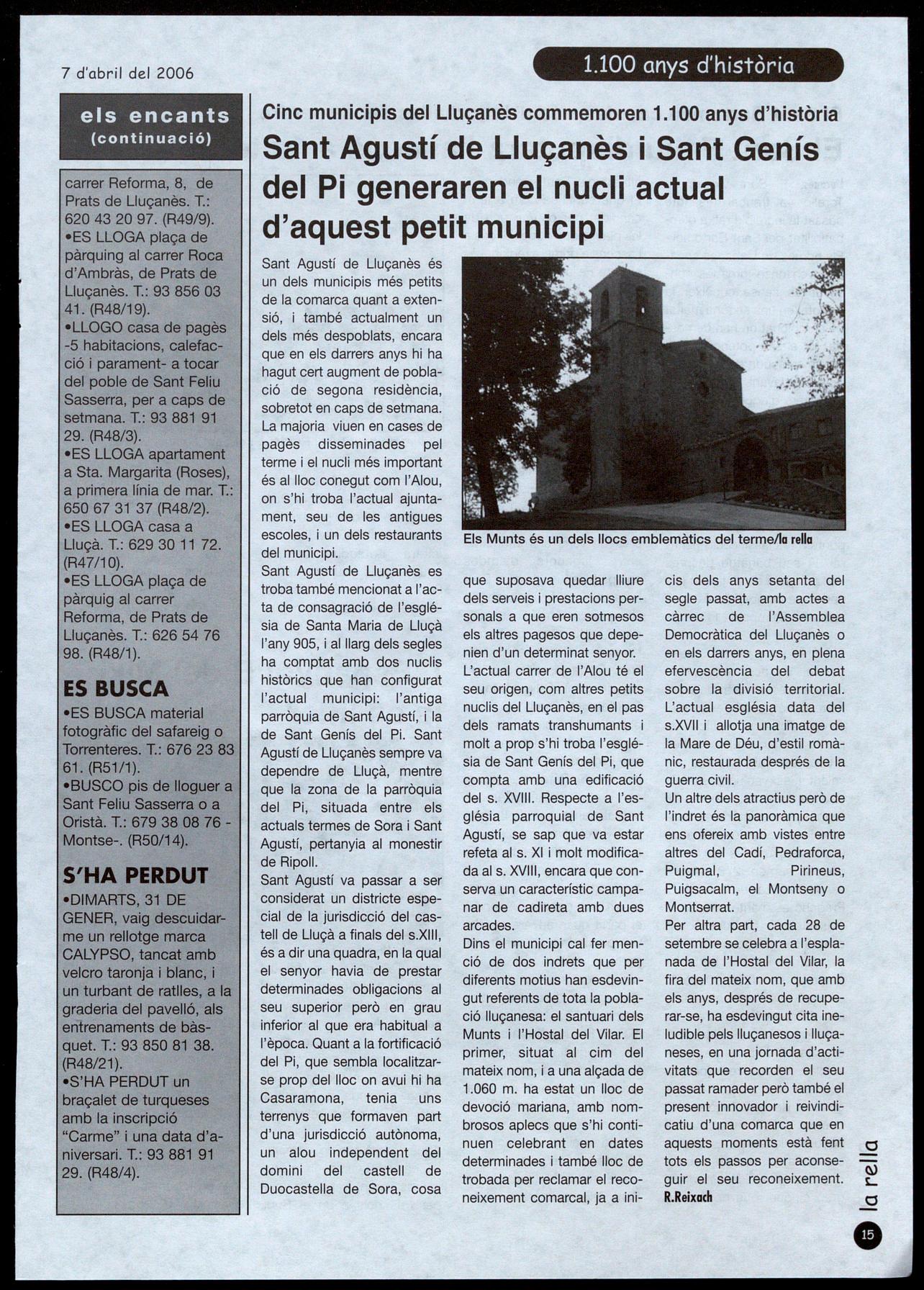 AMPLA PER A DIVERSOS MUNICIPIS DEL LLUÇANÈS.- El Departament d'Universitats, Recerca Societat de la Informació ,.".. 'f:�L. 1 I,) SASS� �llA AaAÀ L.. 2.Q06 I"\E 'N ",..,¡ G AL �"P 1:>6 'fÚ't'50L. !'J!
