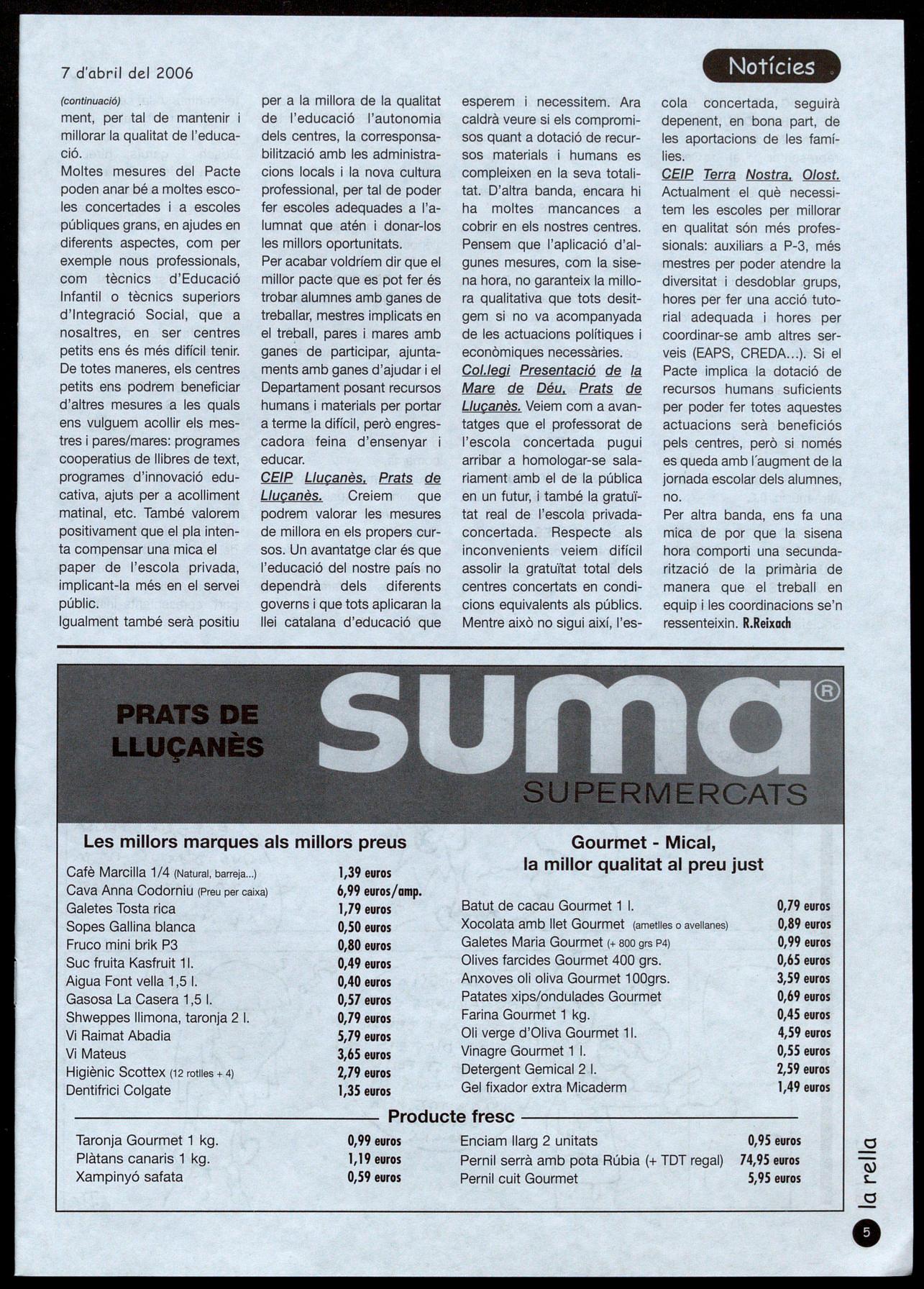 Escoles, 5 - T.: 93 856 06 74 - Prats de Llucanès