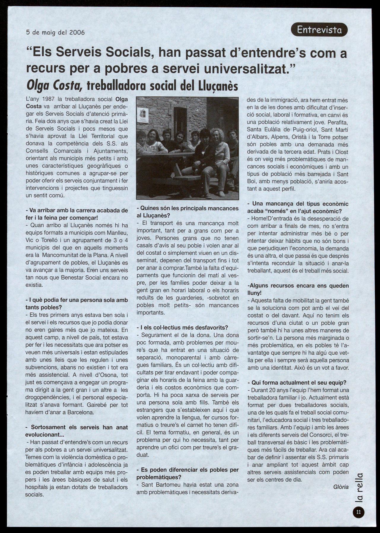 Cronologia de 1.100 anys d'història, editat per l'ajuntament de la vila. L'autora va fer un breu repàs als principals esdeveniments de la localitat des de l'any 905, quan surt citada per primera vegada en l'acta de consagració de Santa Maria de Lluçà, fins l'actualitat. La història del poble no es pot deslligar del que va succeir a la resta del Lluçanès per això molts dels esdeveniments citats feien també referència a altres poblacions veïnes. La guerra de successió i les guerres carlines van suposar un revés per a una població que es refeia d'altres calamitats però aquests fets no van impedir el seu redreçament. AI costat d'això va remarcar la concessió del títol de vila per part de Caries II el 1681 a la gran empenta que va suposar l'entrada al s. XX, truncada pels fets de la guerra civil.
