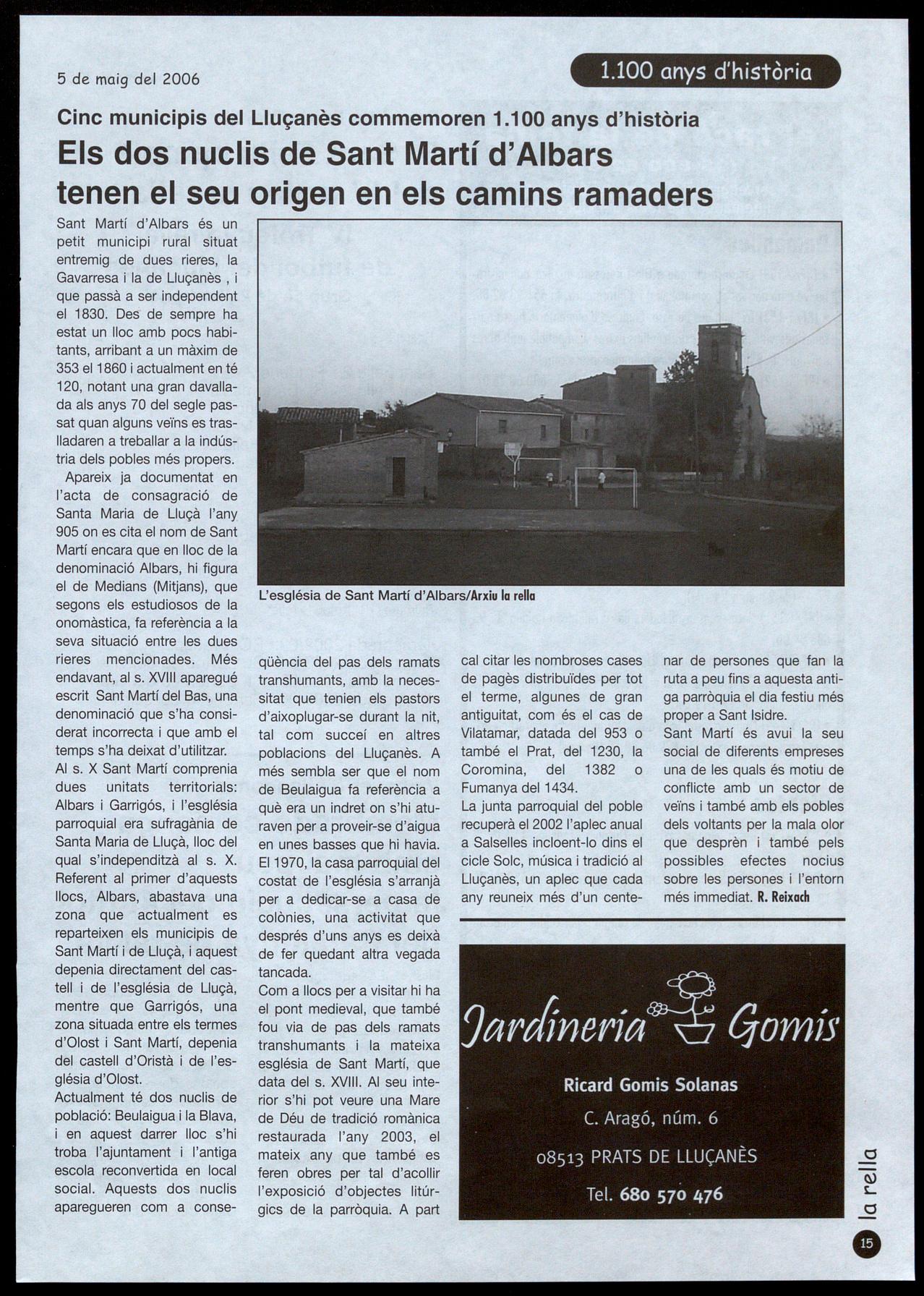 L1uçanès.- El diumenge 14 se celebrarà l'aplec anual de Salselles organitzat per la comissió parroquial de Sant Martí d'Albars que cada edició compta amb una notable participació.