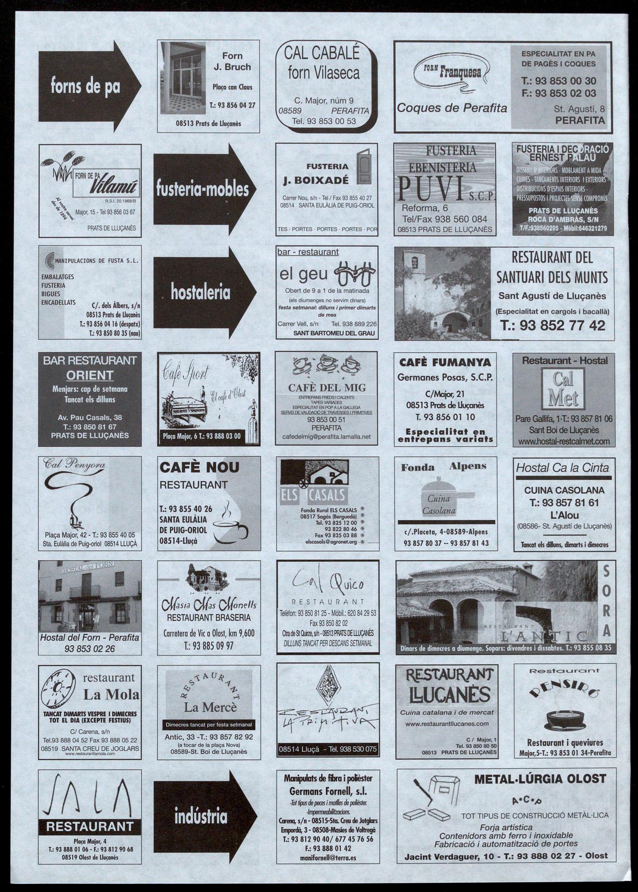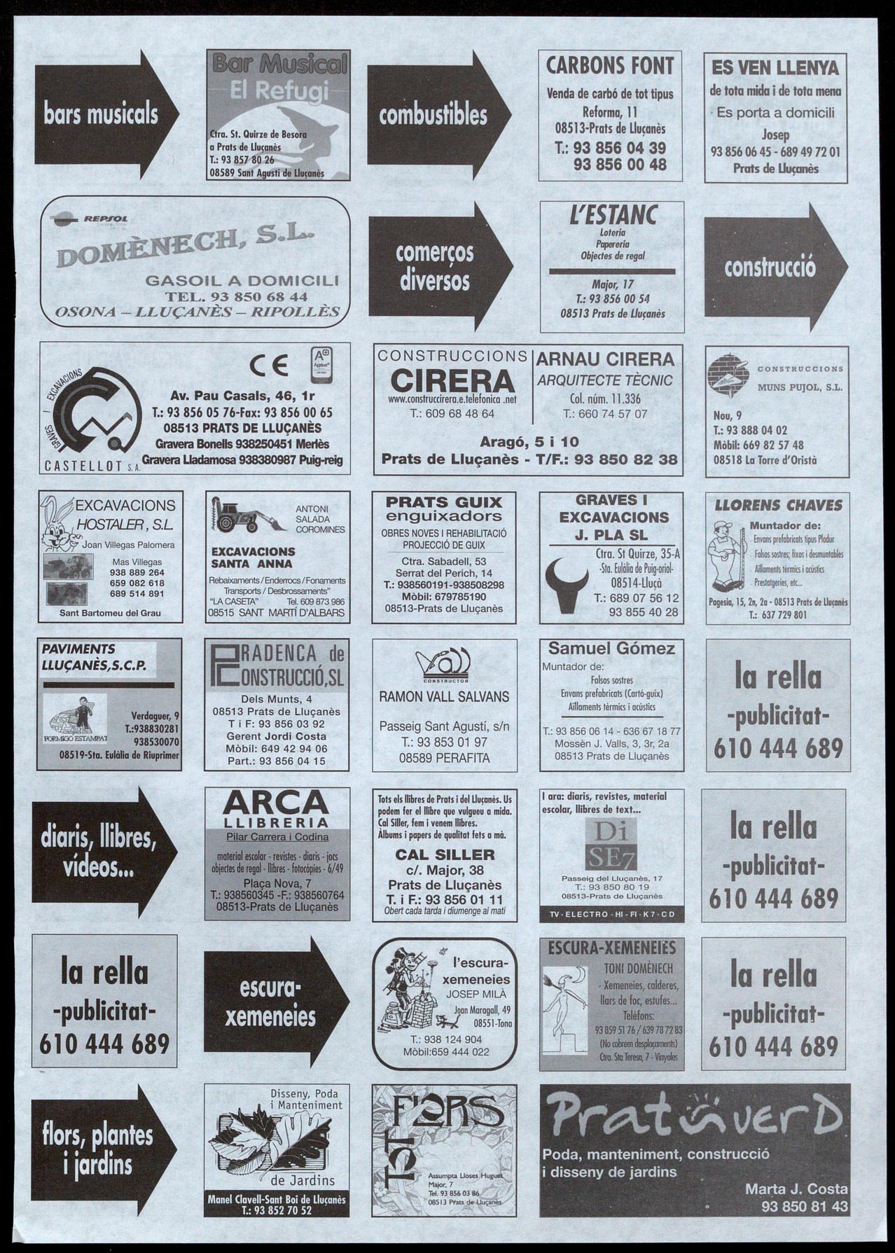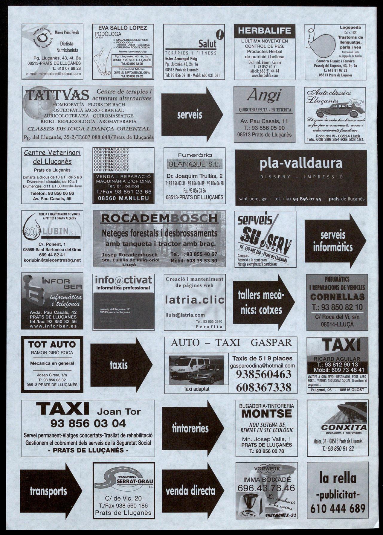 Prats de L1u�anès.· Per iniciativa d'un grup de joves del poble, del 12 de juny al 28 de juliol es tornarà a disputar a Prats un torneig de futbol sala d'estiu. El període d'inscripcions començava el 31 de maig finalitza el proper 8 de juny; aquestes es poden fer efectives al Bar Pavelló, al Di-?