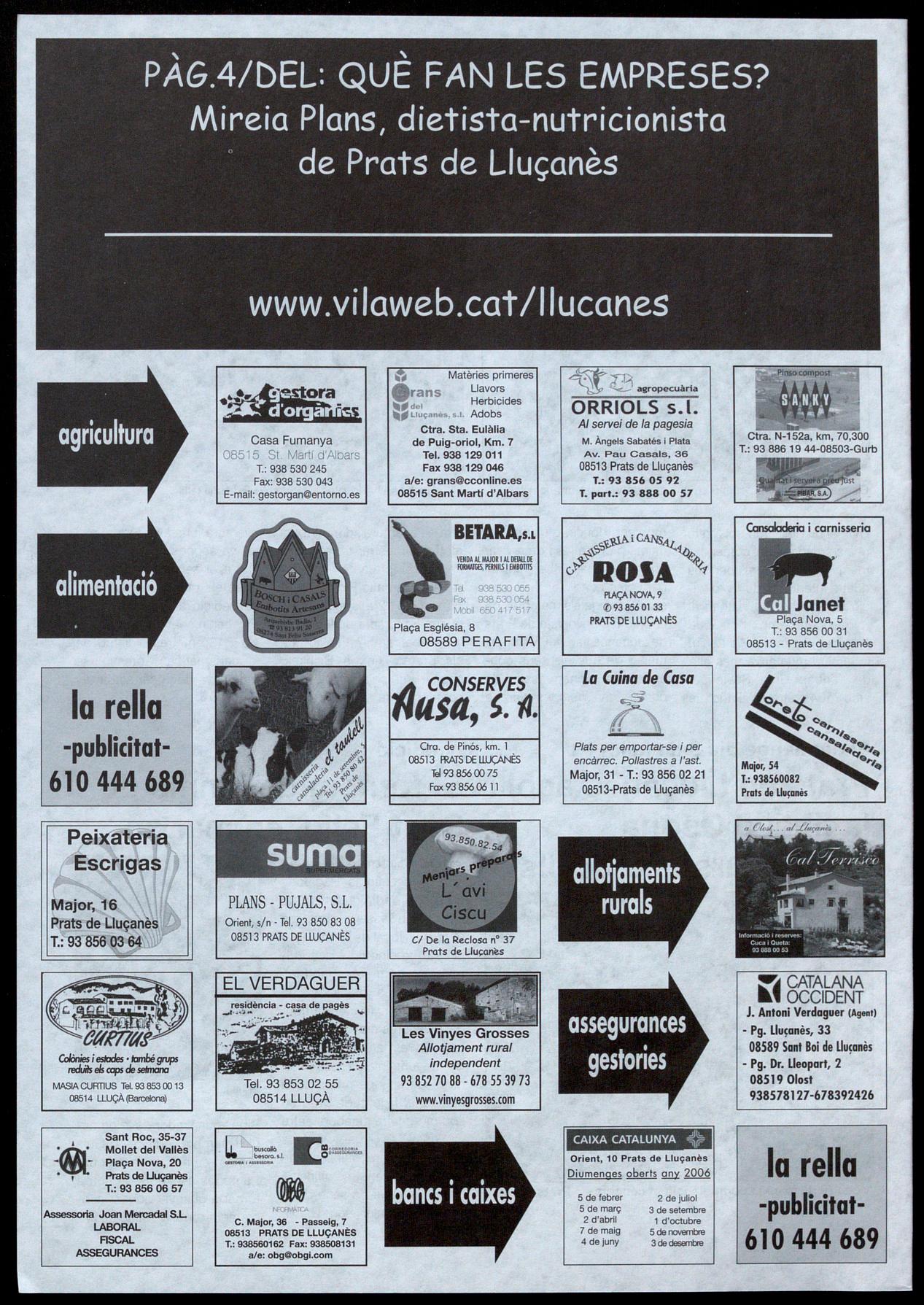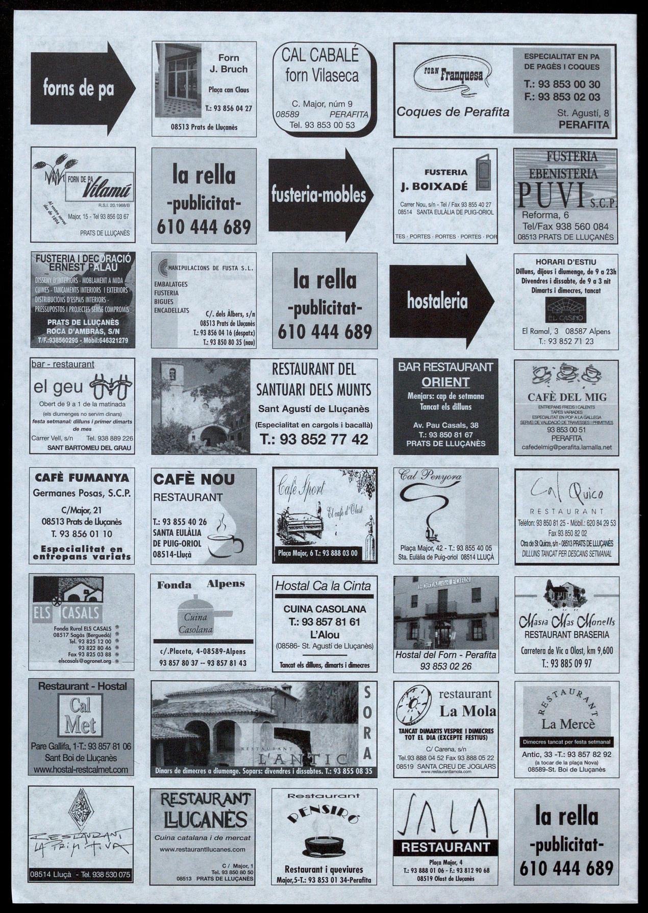 el. Major, 38 Prats de Lluçanès T. F.: 9385601 11 Obert cada tarda i diumenge al matí