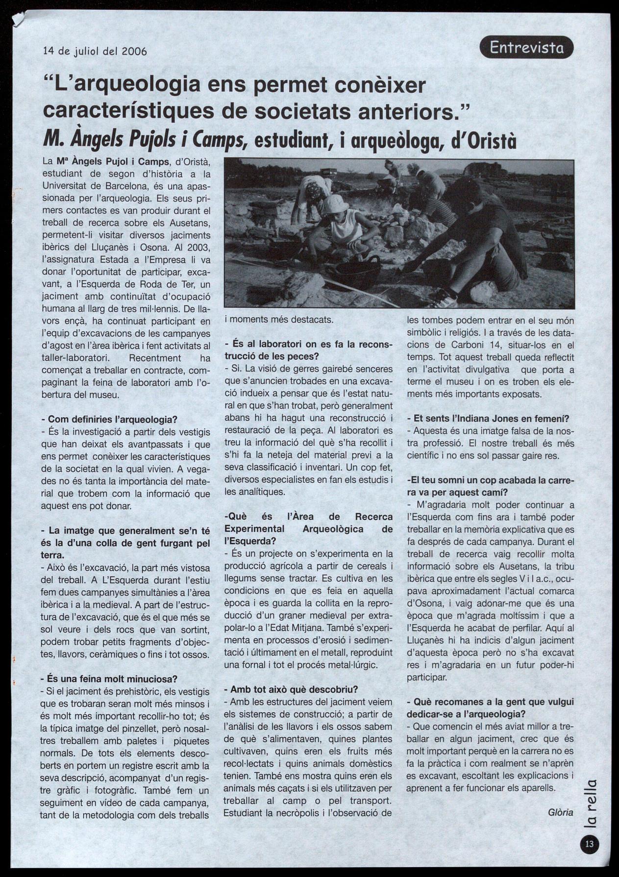 Entrevista, pàg. 13 M. Àngels Pujols, estudiant, d'Oristà