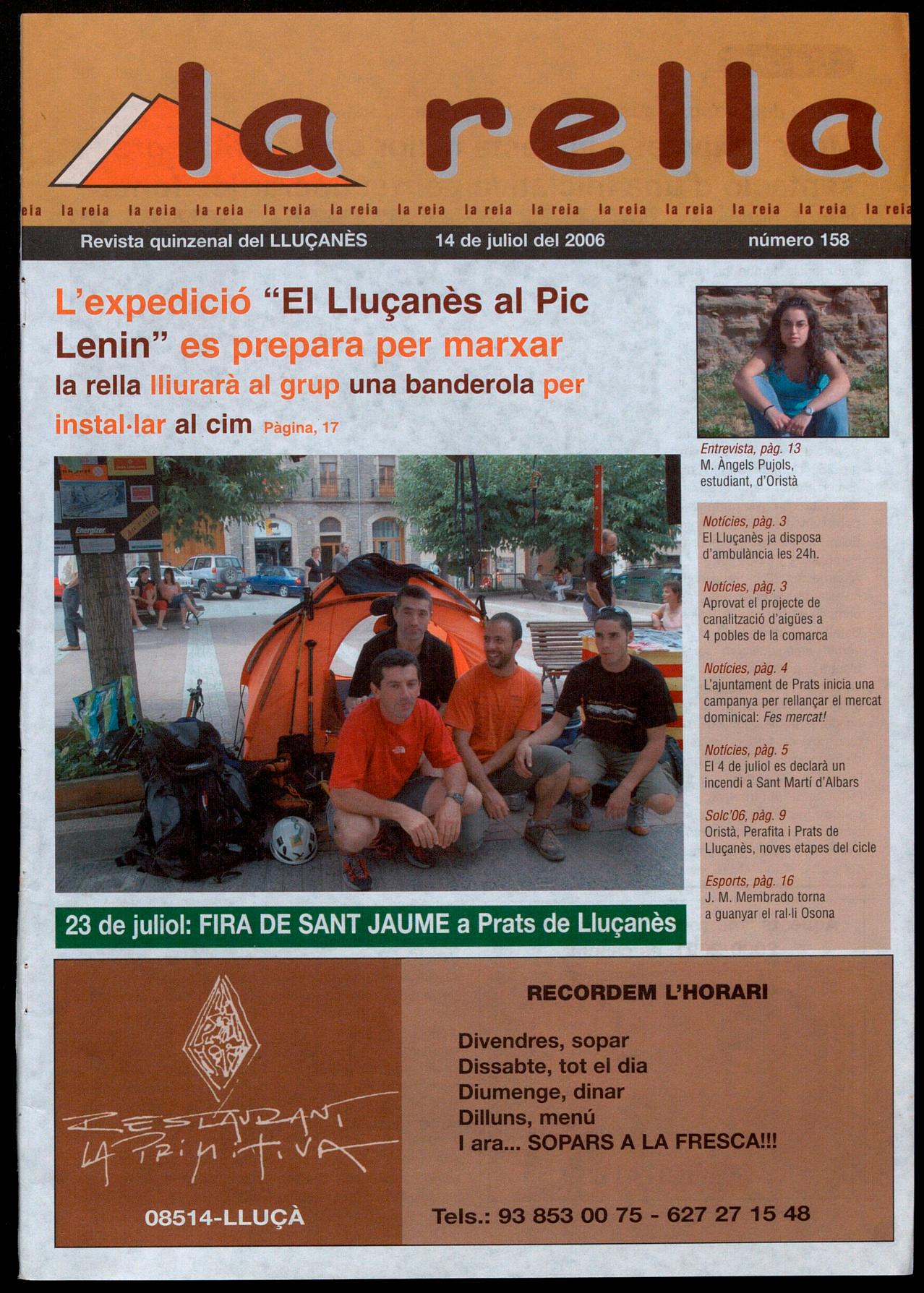 L'expedició "El Lluçanès al Pic Lenin" es prepara per marxar la rella lllurarà al grup una banderola per Instal-tar al cim Pàgina,17