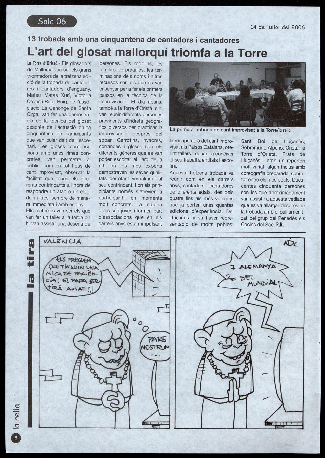 El què destaca del diumenge és l'actuació del grup de cantadors del Lluçanès, El Tornaveu, amb cançons de Lluçanès.