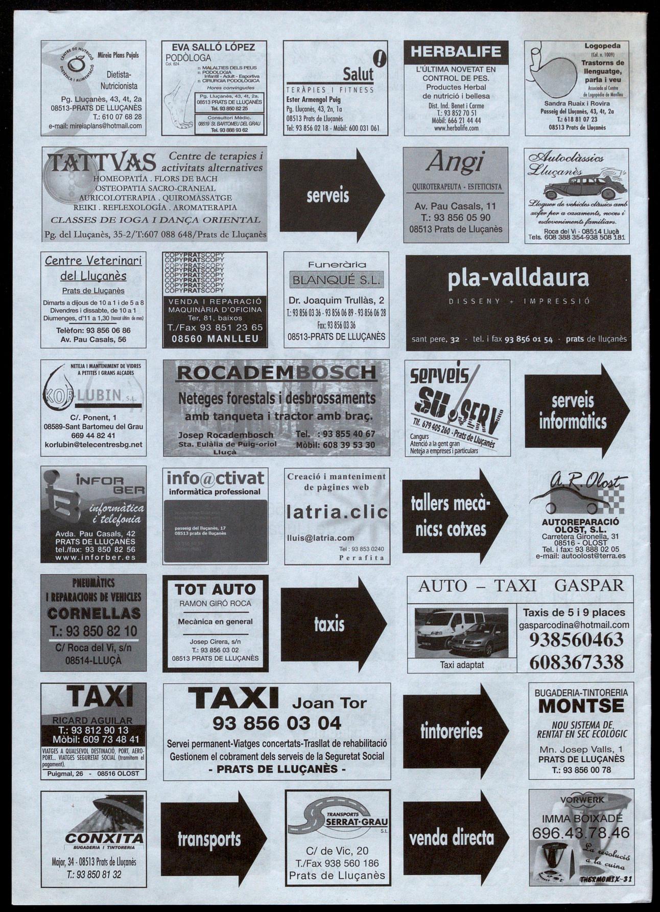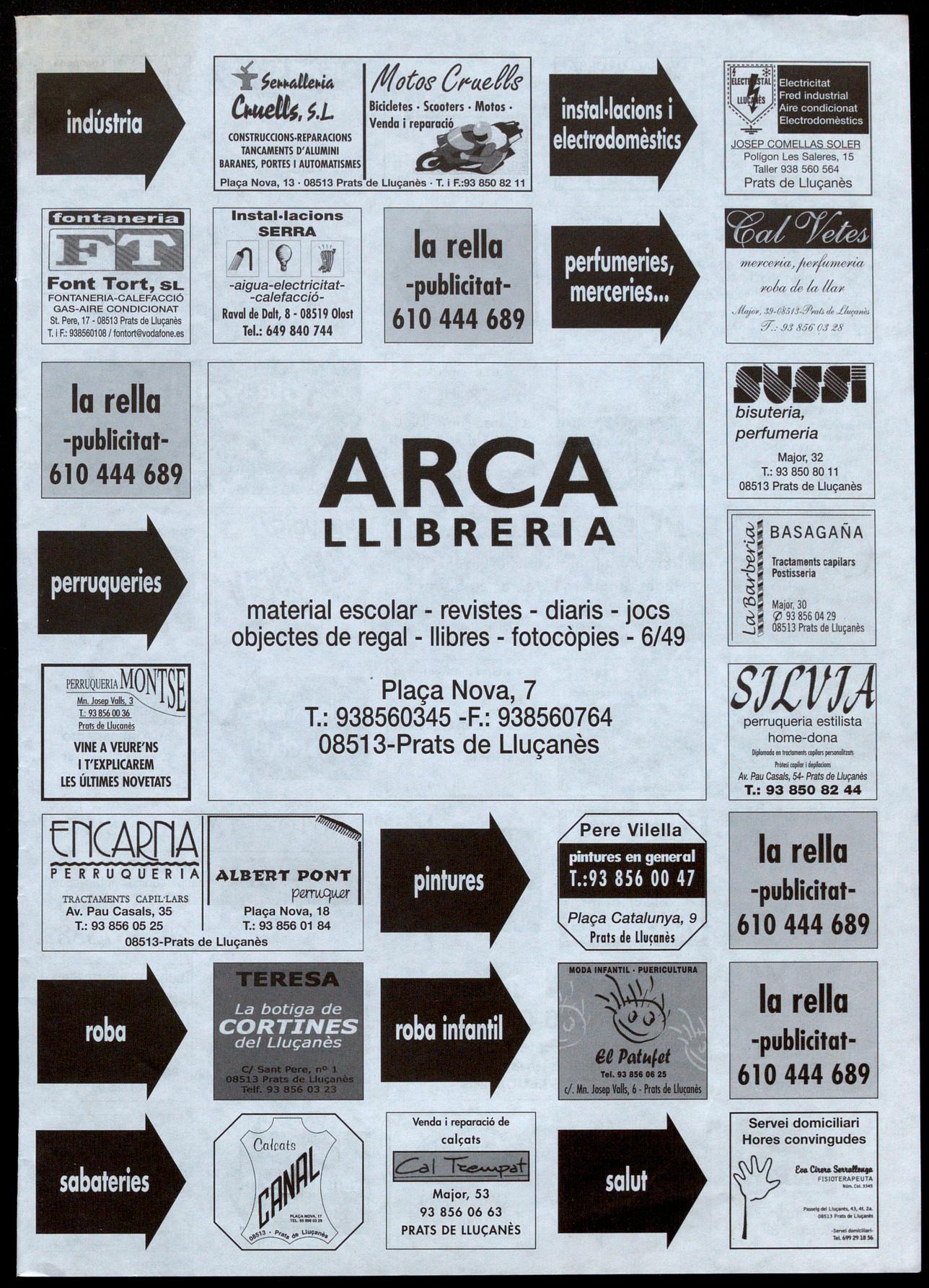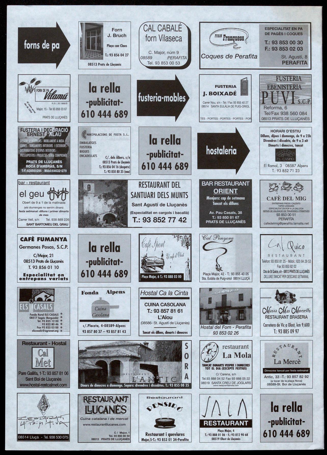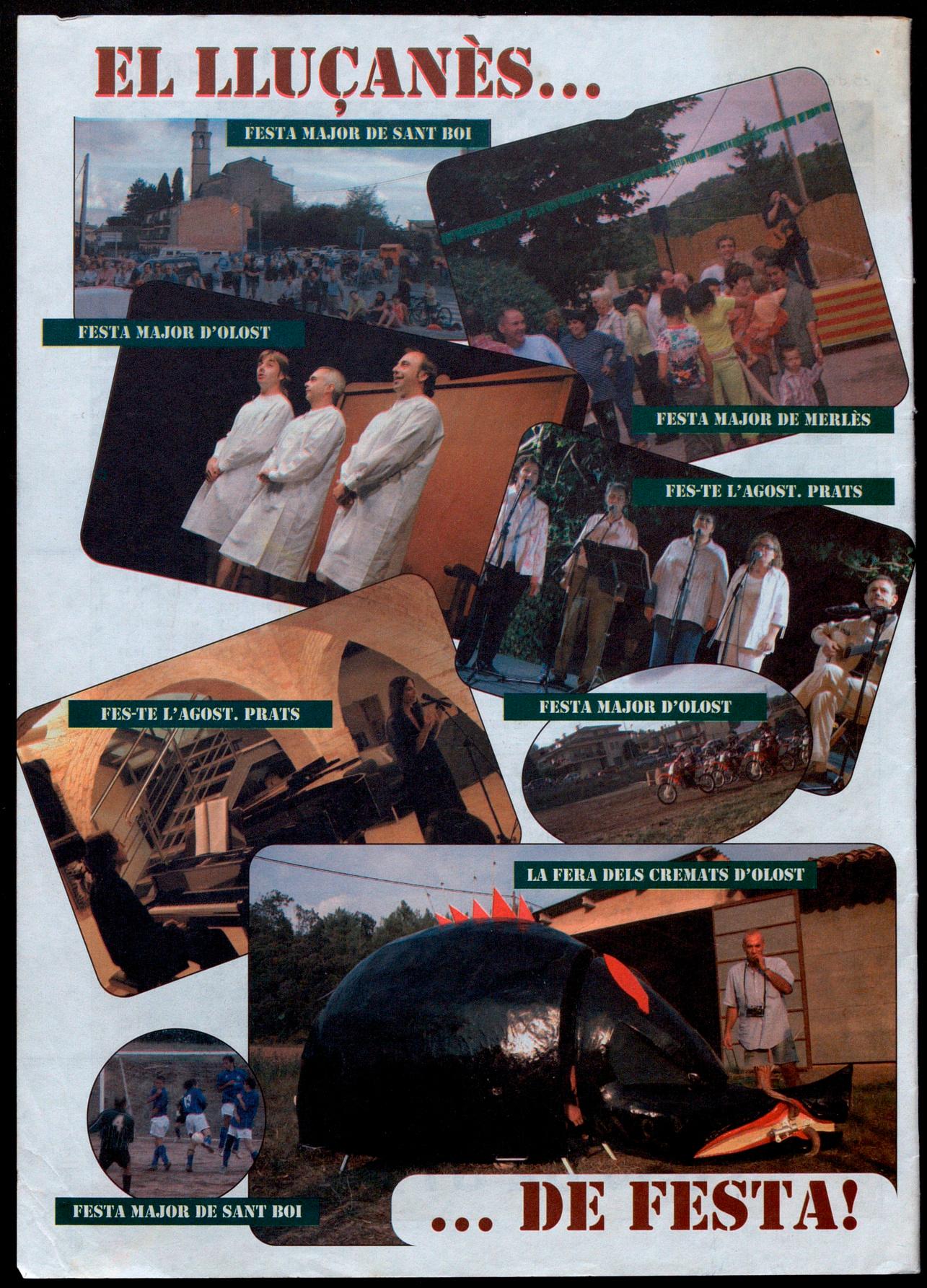Corresponsals: Jordi Pujol {SanI Aguslí de Lluçanèsl, Esler Puig {SanI Feliu Sasserral, Merilxell Verdaguer {Perafilal, MarIa Giravenl {SanI Boi de Lluçanèsl, Lluís Bosoms {Alpensl, Monlserral Vila {SonIa (reu de Joglarsl, Mercè Sabala {Merlèsl, Eslela lopez (Sobremunl), Marla Faja {Orislàl, Monlse Surinyach {lluçà i SIa. Eulàlia de Puig-oriolJ, laura Megias {SanI Barlomeu del Graul, Roser Reixach {Prals de Lluçanèsl.