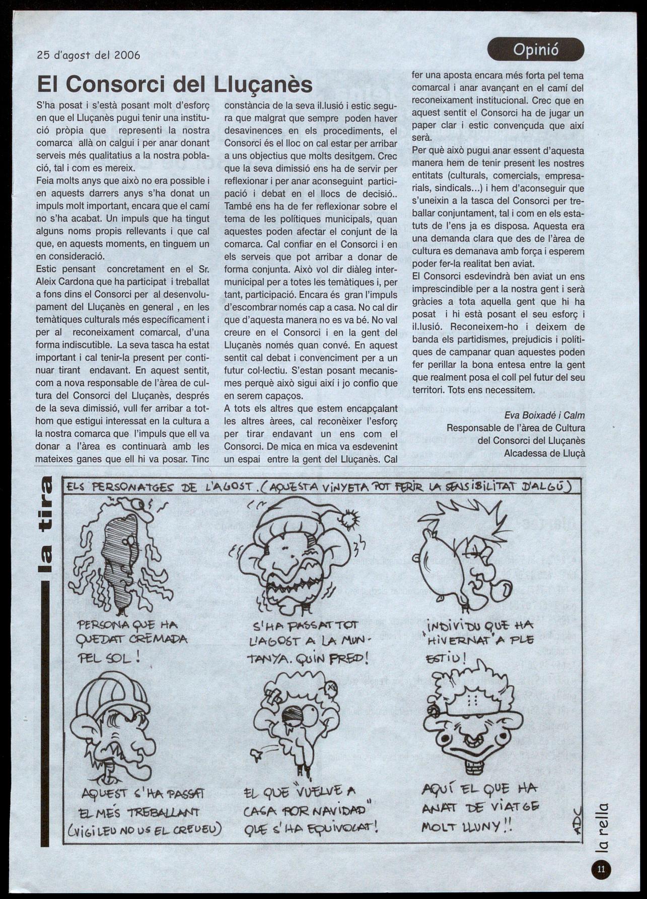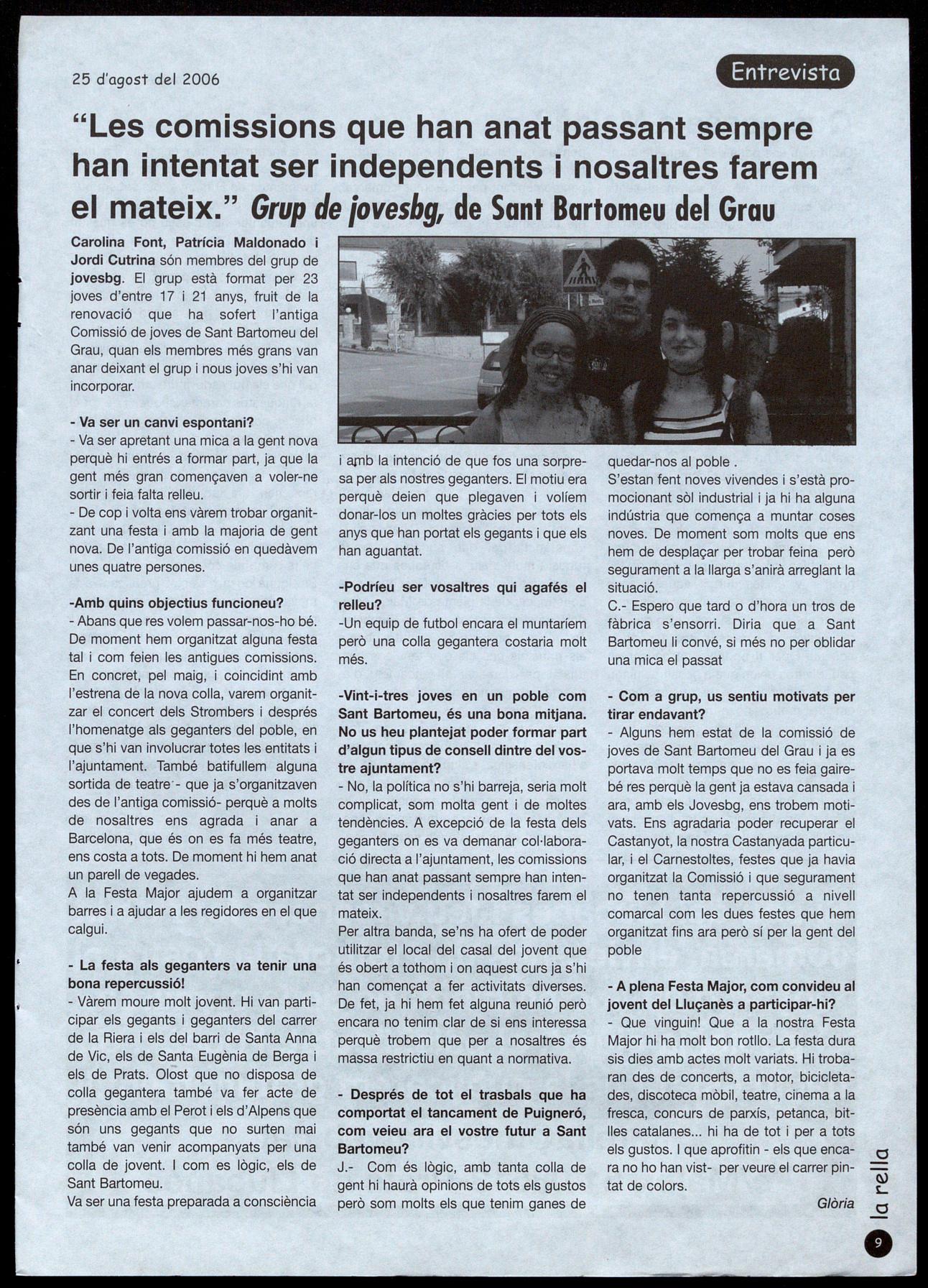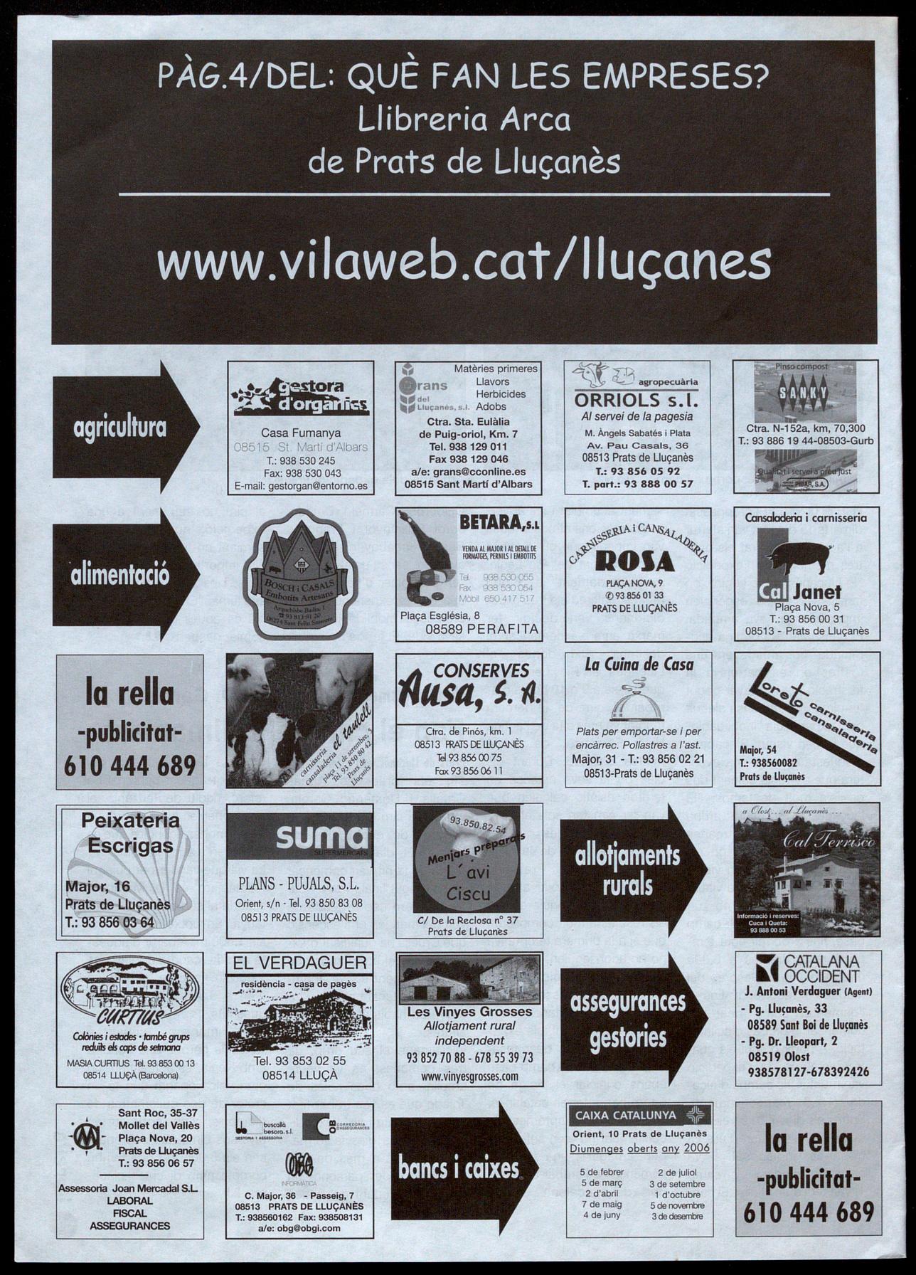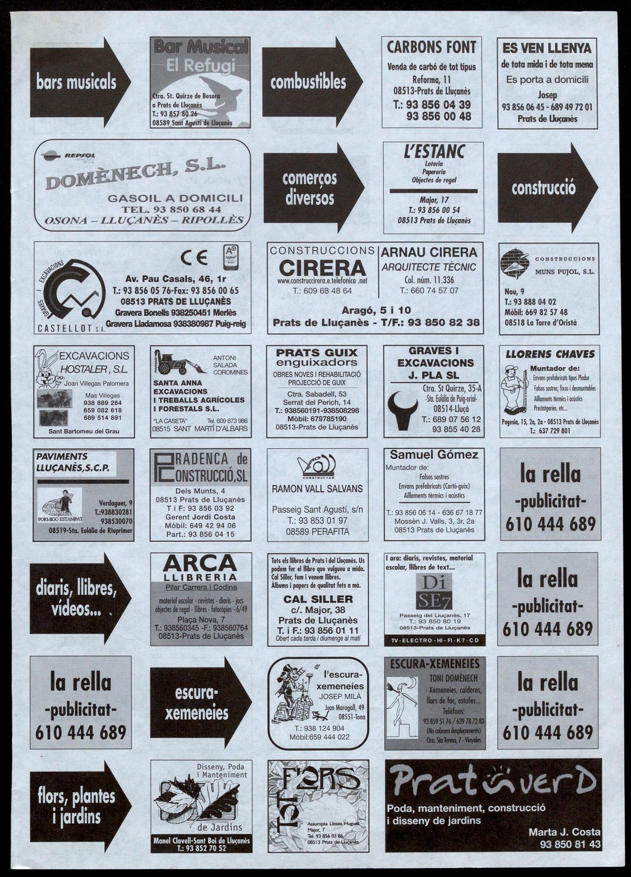 Corresponsals: Jordi Pujol {SanI Aguslí de Lluçanèsl, Esler Puig {SanI Feliu Sasserral, Merilxell Verdaguer {Perafilal, MarIa Giravenl {SanI Boi de Lluçanèsl, Lluís Bosoms {Alpensl, Monlserral Vila {SonIa (reu de Joglarsl, Mercè Sabala {Merlèsl, Eslela lopez (Sobremunl), Marla Faja {Orislàl, Monlse Surinyach {lluçà i SIa. Eulàlia de Puig-oriolJ, laura Megias {SanI Barlomeu del Graul, Roser Reixach {Prals de Lluçanèsl.