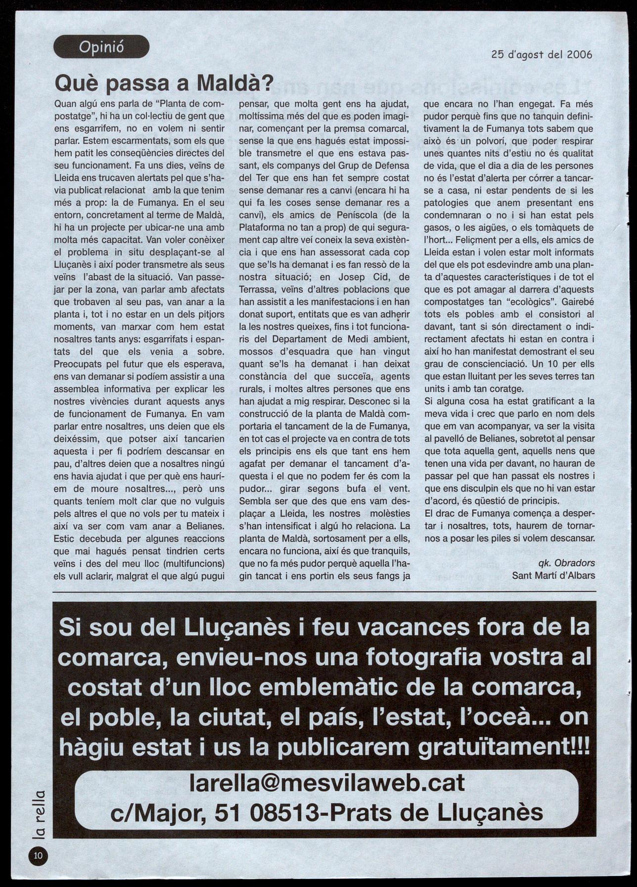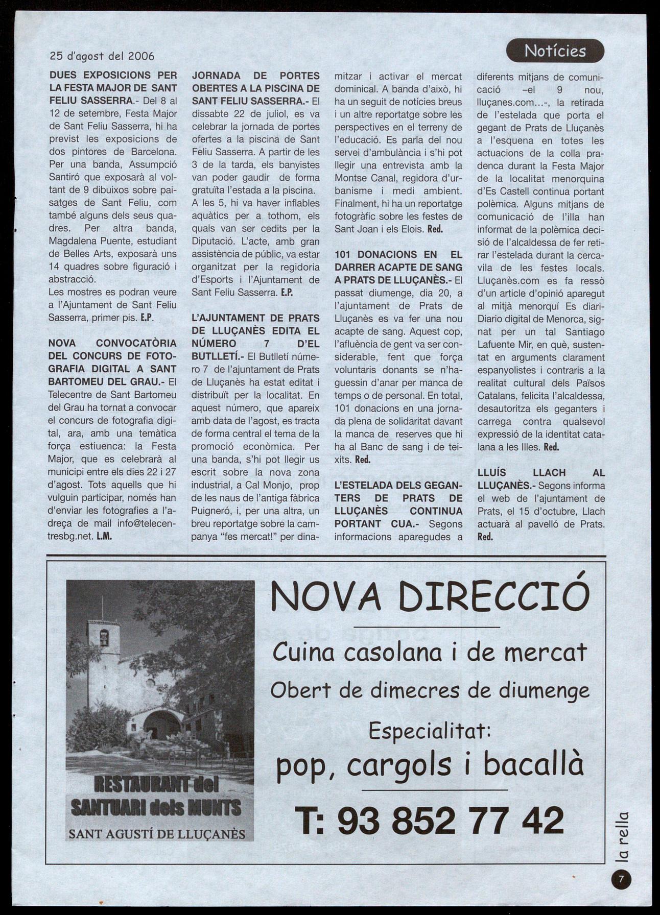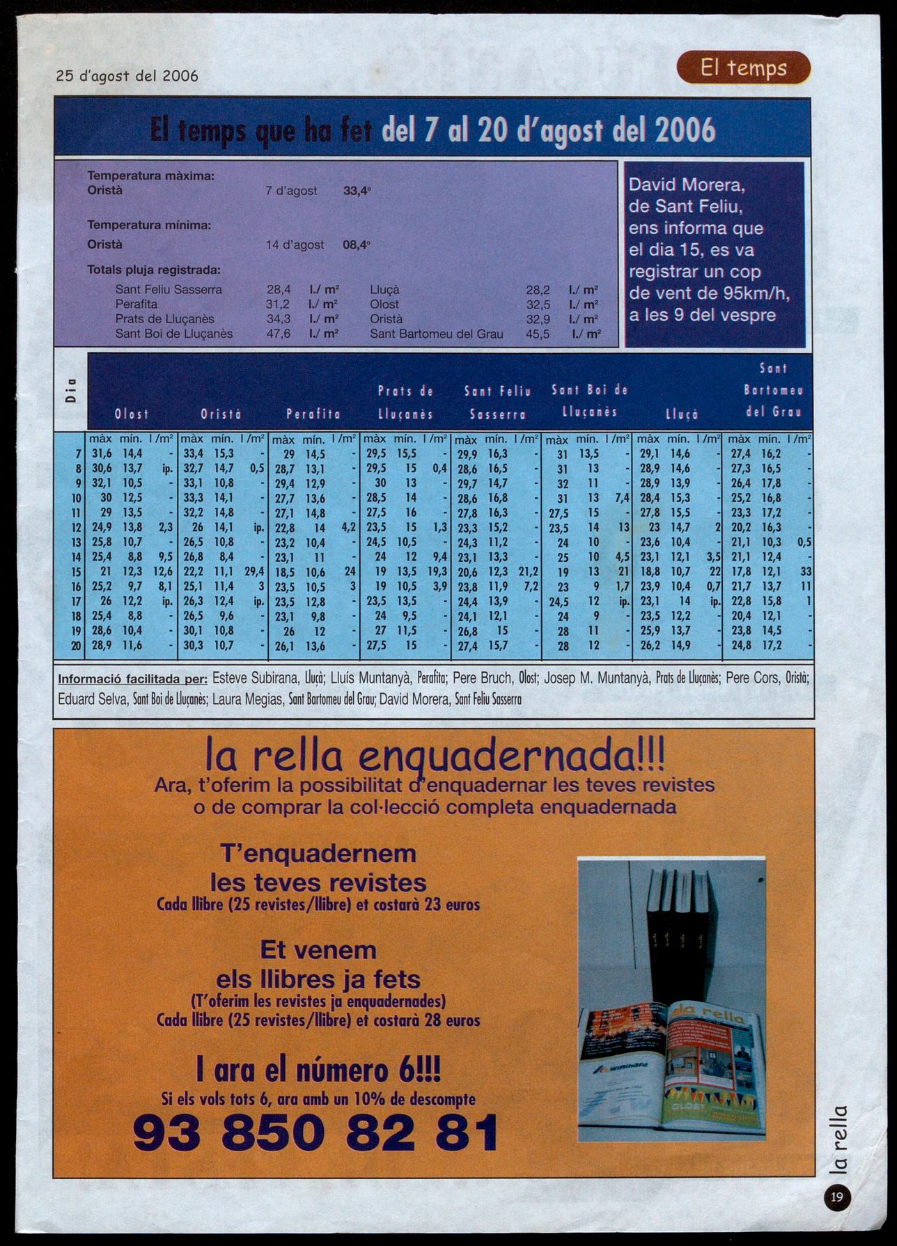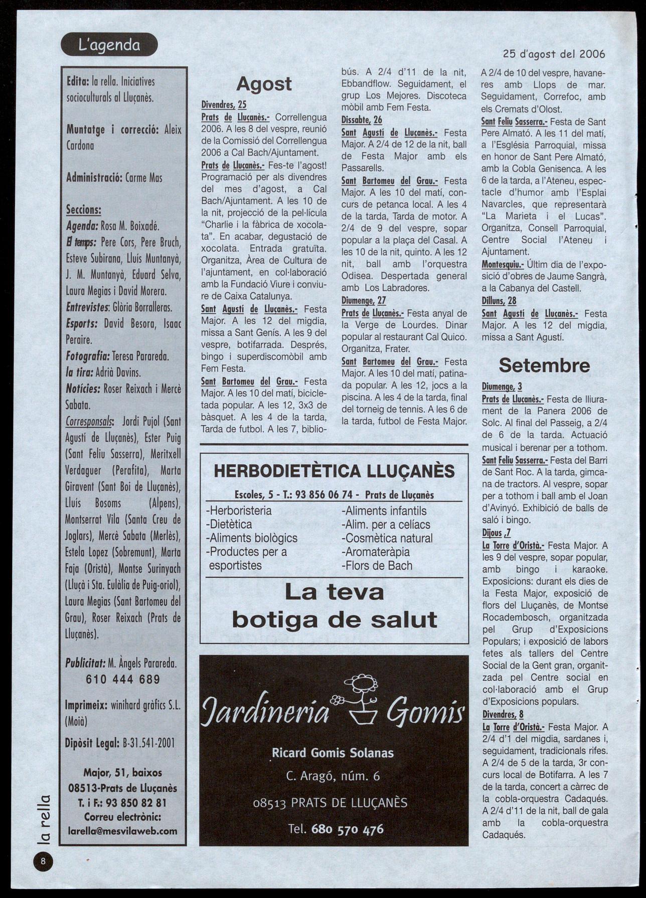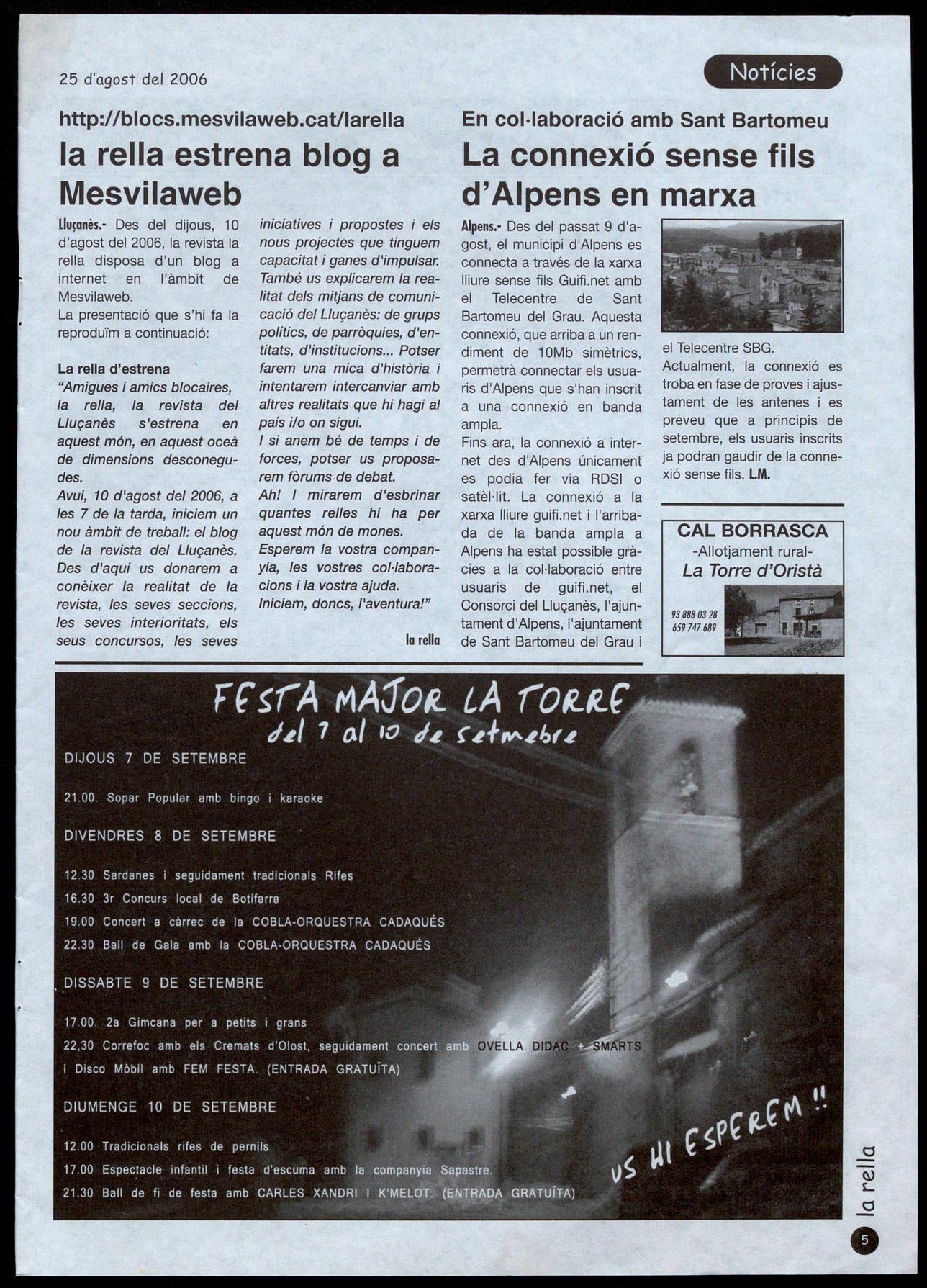 'Lluçanès.- Des del dijous, 10 d'agost del 2006, la revista la rella disposa d'un blog a internet en l'àmbit de Mesvilaweb.