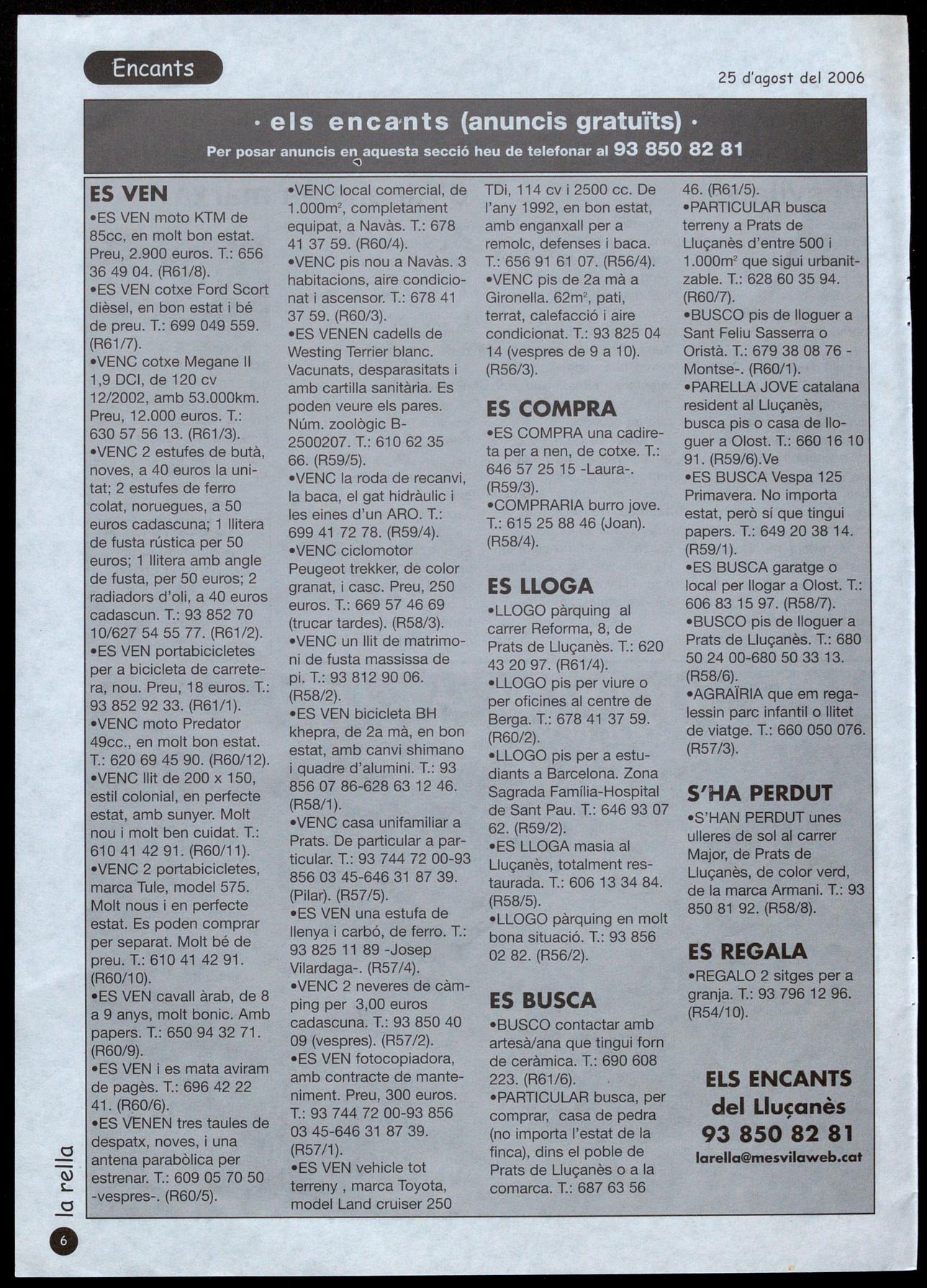 Per posar anuncis en aquesta se��ió heu de telefonar al 93 850 82 81 ()