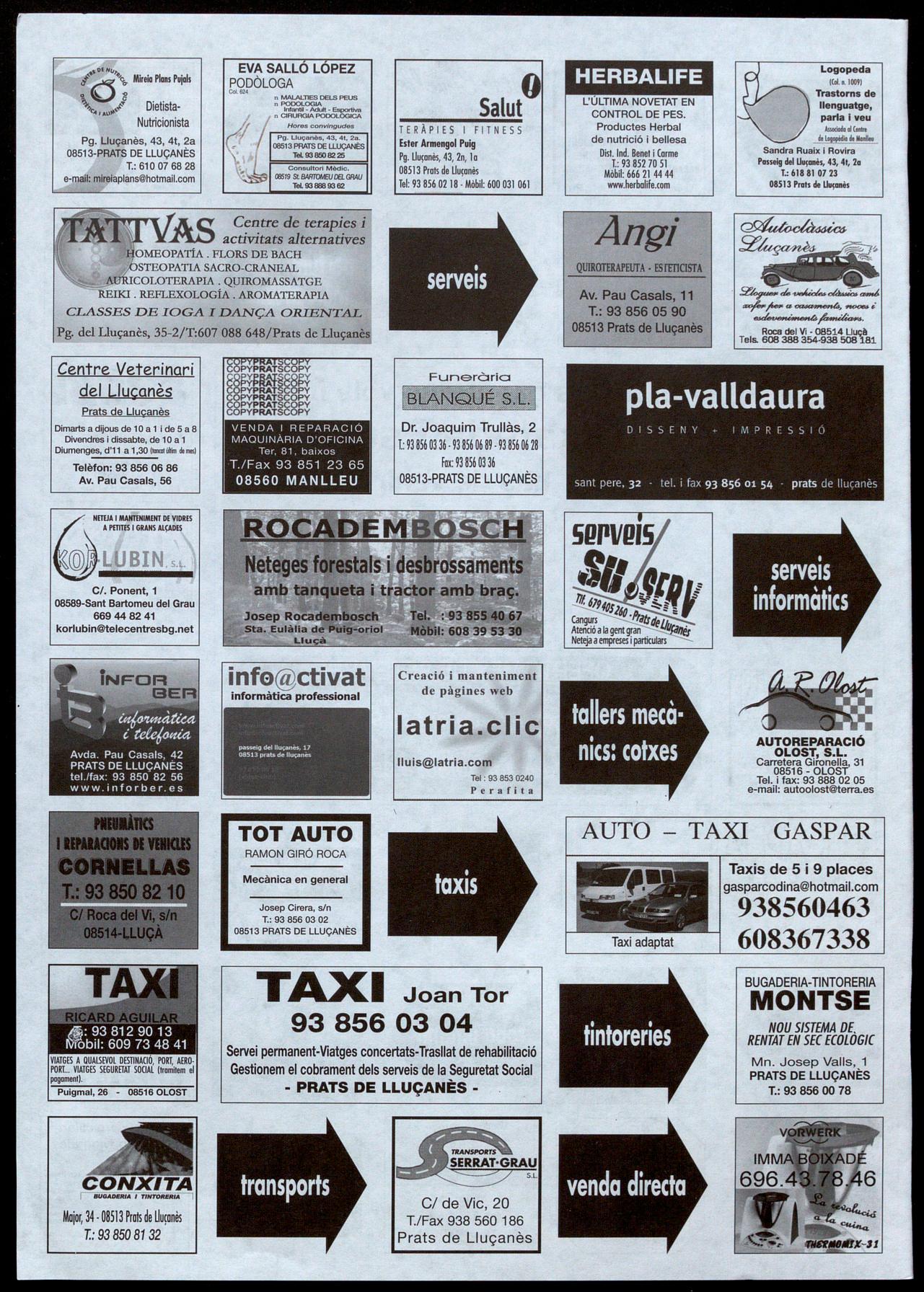 Cremats d'Olost. Hi ha també informacions relatives ala Biblioteca, a l'àmbit educatiu, al temps consells, opinions i imatges antigues, a la contraportada. L'apartat de l'entrevista recull les opinions els records del Cuca, coincidint amb els 30 anys de la seva participació en una expedició que anà a Makalú, a la serralada de I'Himàlaia, la cinquena muntanya més alta del món. VwL