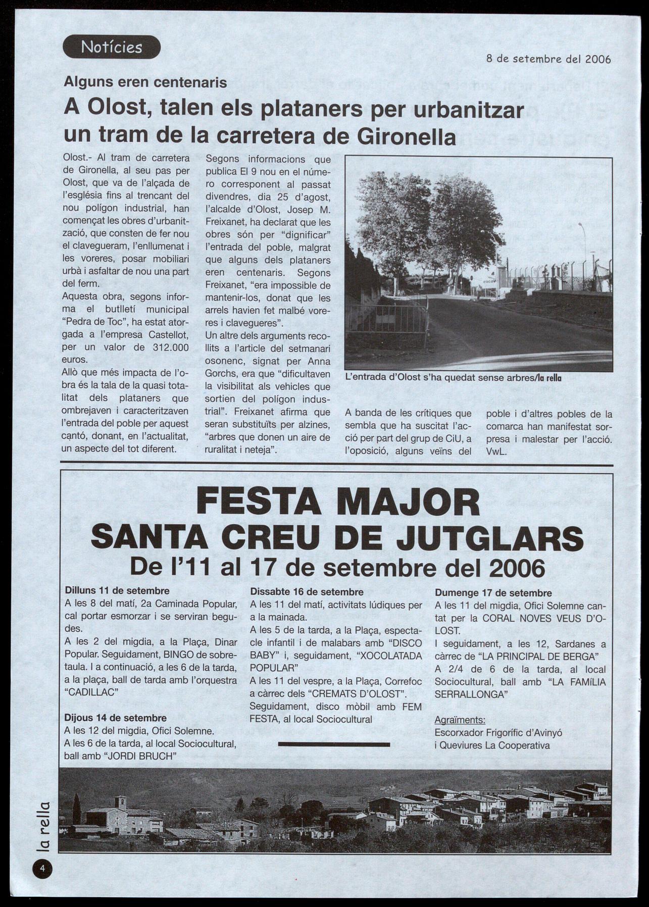 L'ajuntament d'Olost tala els plataners de l'entrada. Pàg.,4